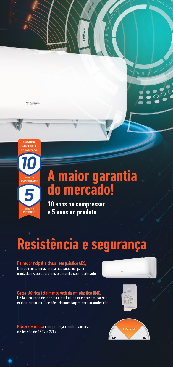 Ar Condicionado Split Hi Wall Gree G-Top Auto Inverter 12.000 Btus Frio 220v R-32 Ar Condicionado Split Hi Wall Gree G-Top Auto Inverter 12.000 Btus Frio 220v R-32 • AI Inverter Gree • Conectividade • Resistência e Segurança O máximo de conforto térmico e economia na palma da mão. Tecnologia Wi-Fi + Bluetooth: conexão rápida e fácil em celulares ou tablets. Possibilita total controle do seu ar-condicionado. Conforto Térmico em Altas Temperaturas: A temperatura ambiente interna é 27oC / 19oC, conforme portaria 269 do INMETRO. Todos os modelos testados na temperatura mínima e no modo de ventilação turbo. A maior garantia do mercado! 10 anos no compressor e 5 anos no produto. • Resistência e segurança Painel principal e chassi em plástico ABS: Oferece resistência mecânica superior para unidade evaporadora e não amarela com facilidade. Caixa elétrica totalmente vedada em plástico BMC: Evita a entrada de insetos e partículas que possam causar curtos-circuitos. É de fácil desmontagem para manutenção. Placa eletrônica: Com proteção contra variação de tensão de 160V a 275V. • Conforto térmico Auto Fast Cooling : No modo refrigeração, o sistema opera em potência máxima para climatizar o ambiente mais rapidamente, ou seja, em poucos minutos já é possível sentir o conforto térmico proporcionado pelo produto. O G-Top Auto Inverter: proporciona o conforto térmico até 45% mais rápido quando comparado a splits convencionais. 7 velocidades de operação : Para controle pleno do fluxo de ar. Proporciona rápida refrigeração e mantém baixo nível de ruído. Unidade evaporadora silenciosa: produz apenas 24 dB(A) de ruído. Isso junto com display totalmente invisível proporcionam conforto total do ambiente. Função iFeel: controle remoto detecta a temperatura ambiente e envia informações ao ar-condicionado, auxiliando na manutenção do conforto térmico. • Ar ambiente muito mais saudável Auto Clen : Realiza a esterilização da serpentina em 4 etapas* (* Apenas para produtos de ciclo Quente/Frio. Produtos de ciclo Frio apresentam 3 etapas.) • Condensa • Congela • Descongela • Desumidifica a Serpentina Multi Filtro : Quando o assunto é qualidade do ar a nova linha G-Top Auto Inverter conta com uma poderosa barreira contra agentes causadores de doenças respiratórias. Mantém o ambiente livre de vírus e bactérias, melhorando a qualidade de vida. 1. Tela de Alta Densidade: Retém partículas de poeira, fibras de tecido e pelos de pet. 2. Filtro Antibactéria : Atua na eliminação de bactérias. 3. Filtro Íon de Prata: Age na membrana da célula bacteriana. 4. Filtro Chá Verde: Atua como antioxidante. 5. Carvão Ativado : Elimina odores indesejados. Tecnologia Ion Clean: Além de suprimir odores indesejados elimina, vírus, bactérias e outros microorganismos no ambiente, proporcionando um ambiente 99,99% livre de agentes prejudiciais à saúde. • Eletrólise nas moléculas de água do ambiente. • Ação de purificação através das moléculas de água. • Eliminação de vírus e bactérias. • Economia de energia Auto Learning : Uma nova forma de conforto térmico em que o uso de algoritmo combinado com as leituras dos parâmetros e condições do ambiente permite ao sistema calcular o melhor ponto de operação , gerando redução do consumo e aumentando de eficiência. Trocadores de calor: Até 15% mais eficientes. Tubulação em cobre com ranhuras. Condensadora de 30.000 BTU/h Com tecnologia 100% Inverter Motor Ventilador BLDC * Mantém a máxima estabilidade de potência nas cargas parciais Compressor com Duplo Rotor ** Proporciona rápida refrigeração do ambiente. Evita alta rotação do sistema, assim reduz as vibrações e os níveis de ruído. Válvula de Expansão Eletrônica* Garante estabilidade e melhor performance no controle de temperatura. (* Para potência de 30.000 BTU/h) (**Para potências de 24.000 e 30.000 BTU/h) • Multiproteções Auto Repairing : Em caso de defeito relacionado a mau funcionamento, que não seja sistêmico, o produto é capaz de corrigir a falha em tempo real.