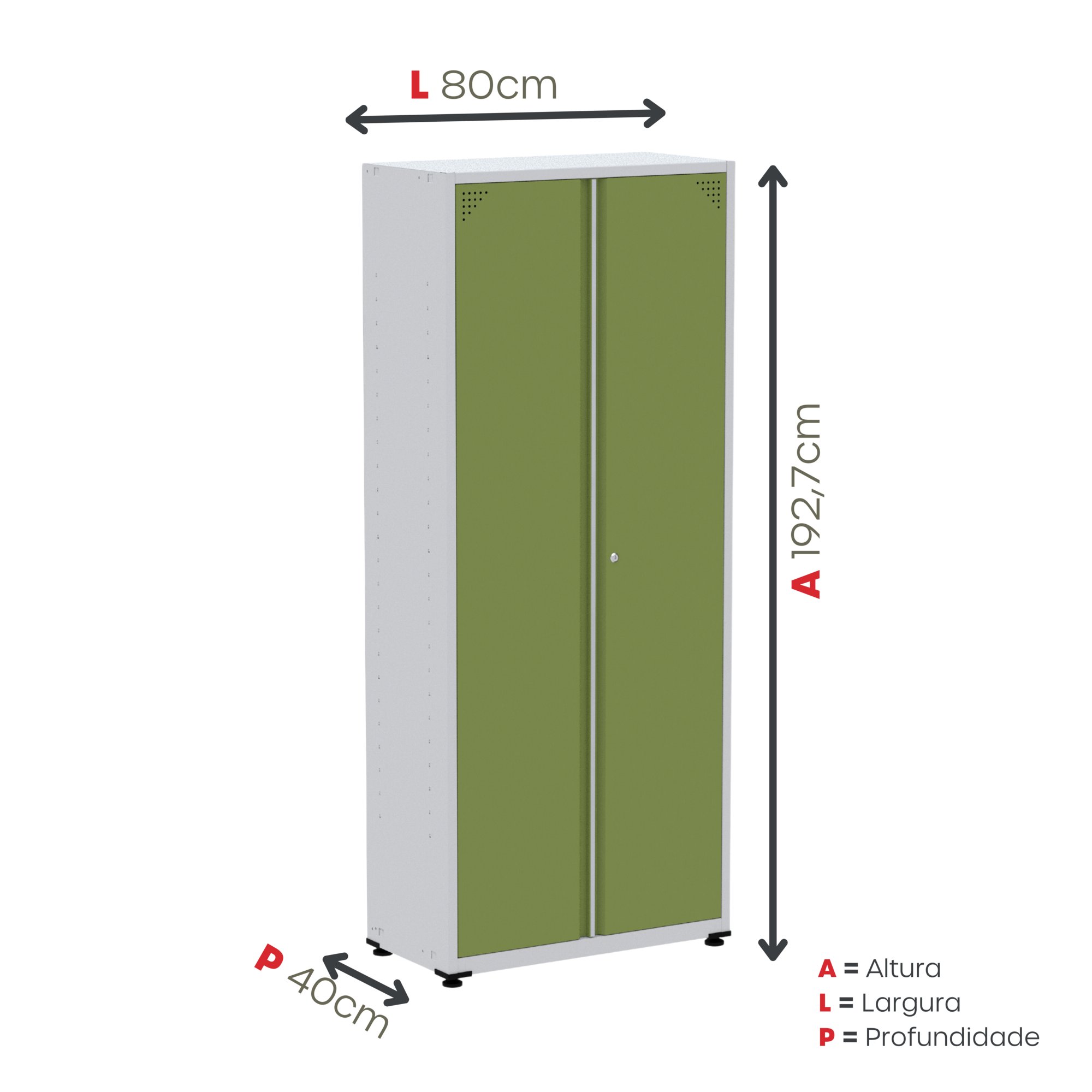 nosso Armário De Aço Tem Duas Portas Com Fechadura Cilíndrica Tipo Yale Com Duas Chaves, 4 Prateleiras Que Tem Por Sua Vez A Capacidade De 20 Kg, Facilitando A Organização Do Seu Ambiente De Trabalho No Dia A Dia.