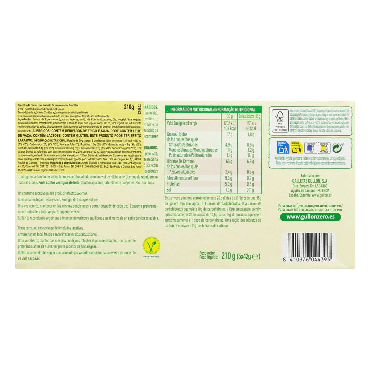 O Sandwich Cacao Crema Gullón, É Um Biscoito De Cacau Com Recheio De Creme Sabor Baunilha, Sem Adição De Açúcares.
