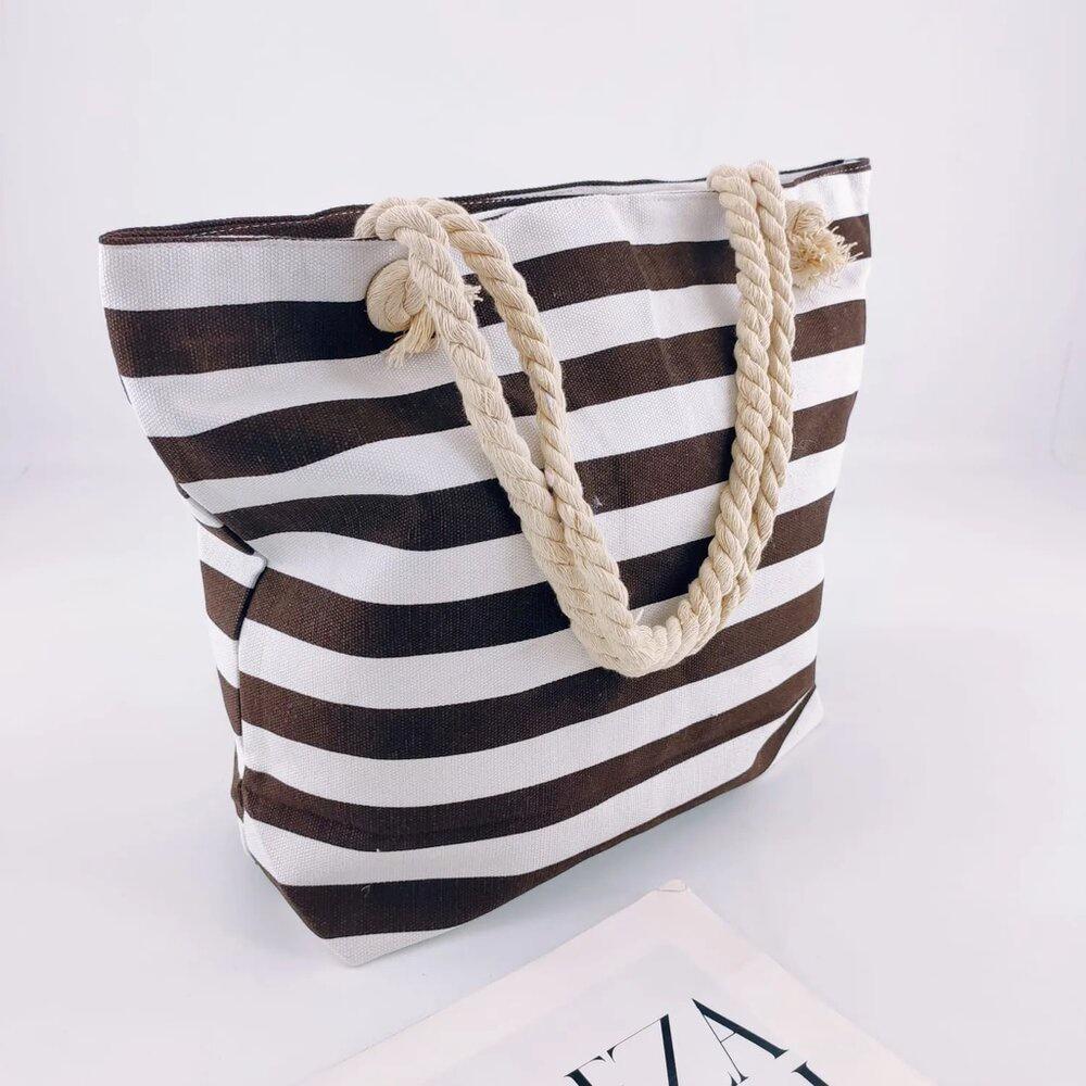 - Bolsa Listrada Com Alça De Corda Sacola De Praia E Verão Piscina Forro Interno Impermeável Ecobag