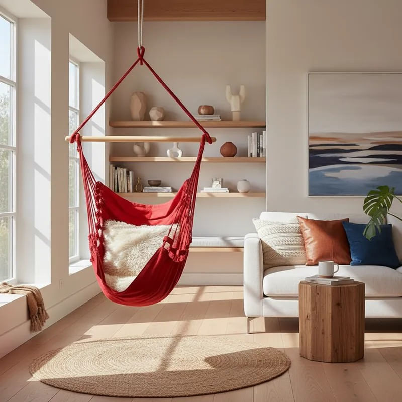 Transforme Qualquer Ambiente Em Um Espaço Mais Aconchegante. A Cadeira Rede De Teto É Uma Opção Versátil Para Quem Busca Conforto No Dia A Dia. Produzida Em Tecido 100% Algodão E Com Design Artesanal, Ela Se Adapta Bem A Varandas, Salas, Quartos Ou Áreas Externas Cobertas.