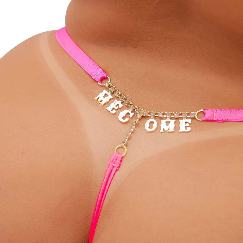 Calcinha Plus Size Fio Dental Com Frase Personalizada Me Come Ousada Confeccionada Em Renda, É Um Modelo Fio Dental Com Strass E Escrita No Bumbum, Peça É Bem Elástica E Possuí Alças Reguláveis, Veste Os Tamanhos (48-52)