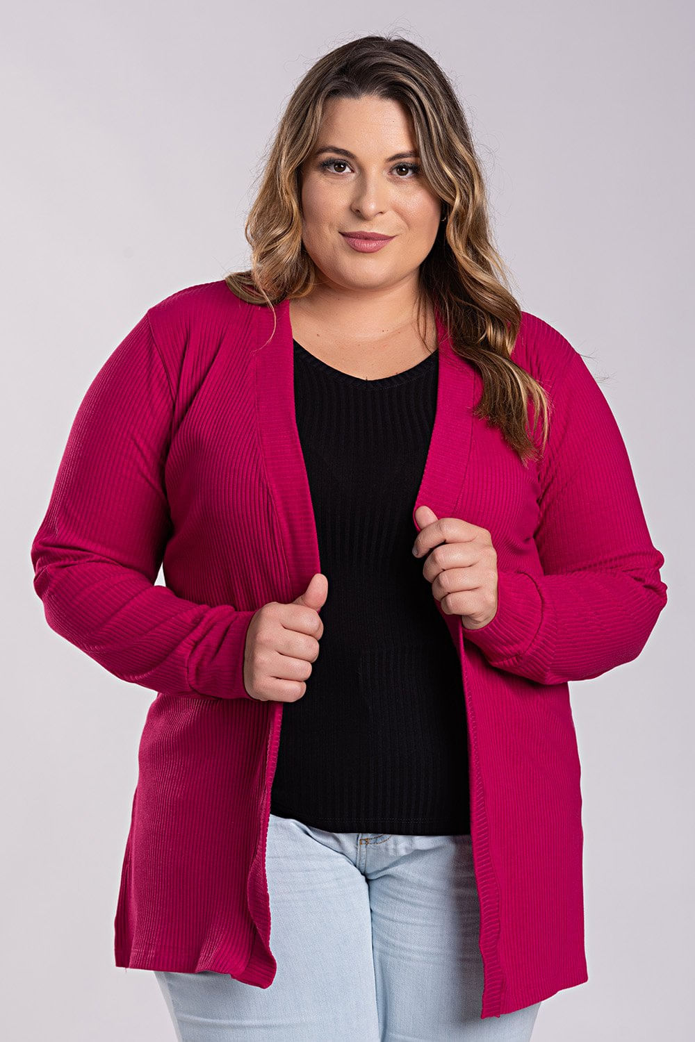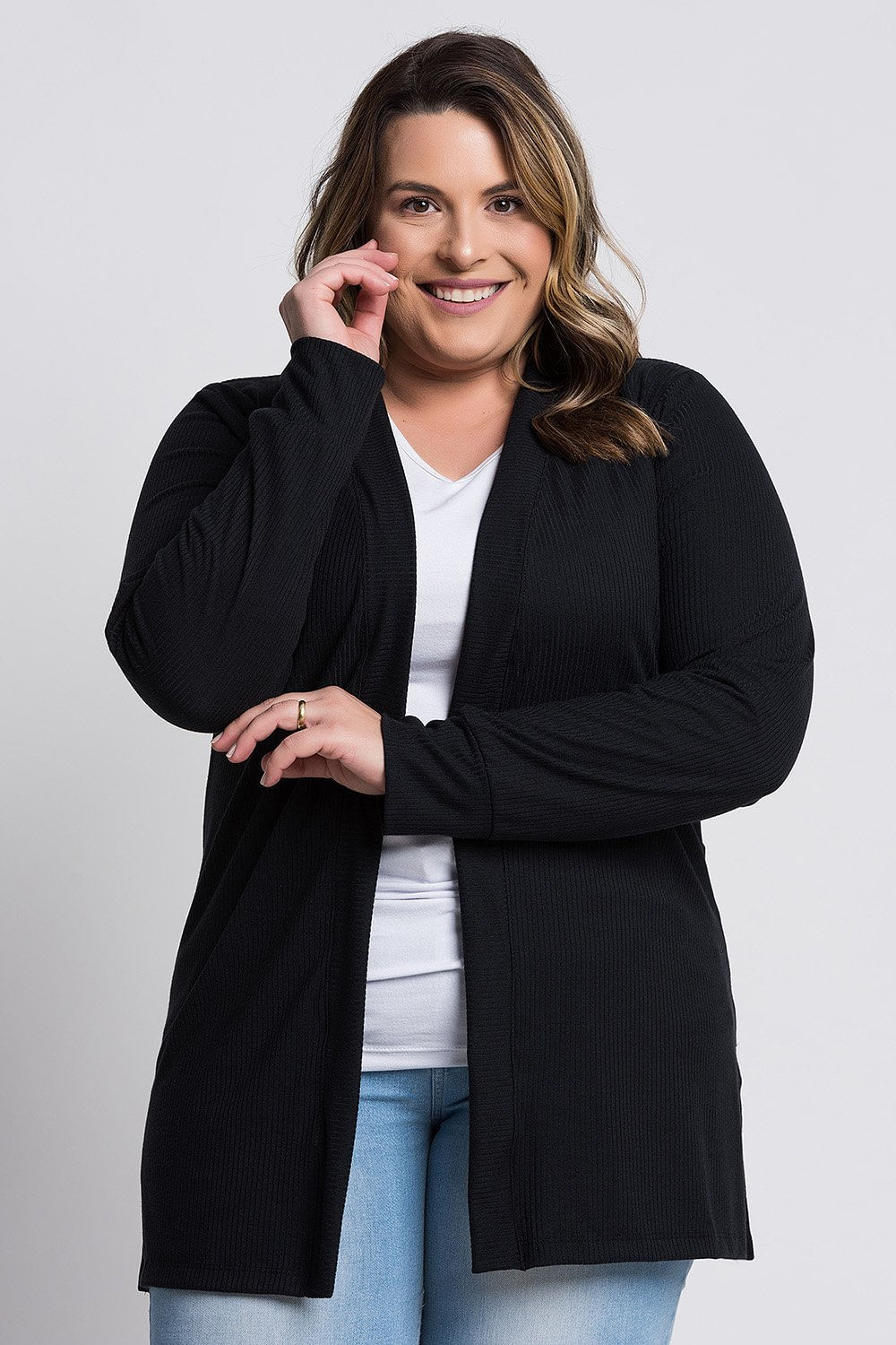 - Cardigan Feminino Plus Size Ribana Larga - Serena