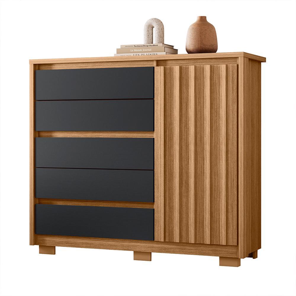 Cômoda Sapateira Duetto 1 Porta Ripada E 5 Gavetas Jatobá/fendi Metallic - Móveis Albatroz