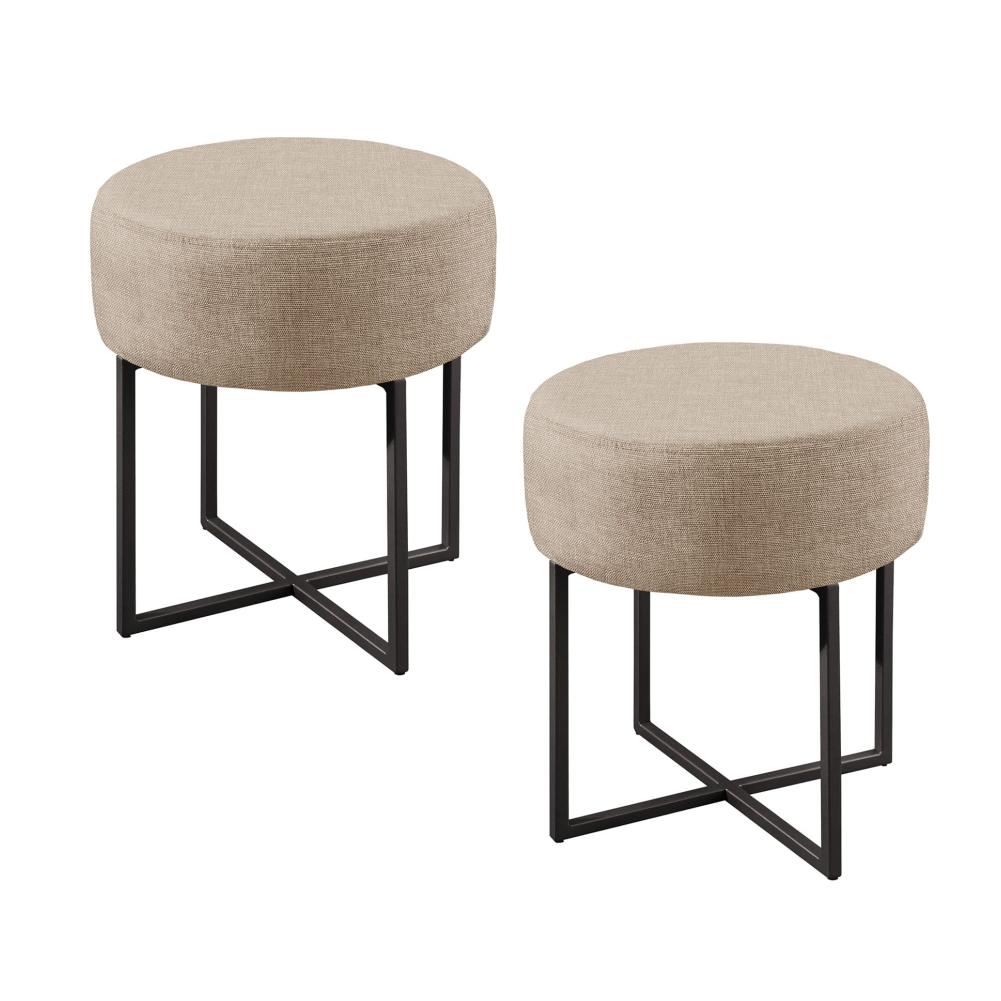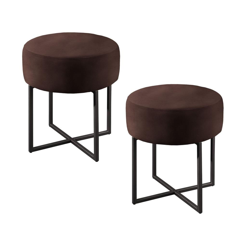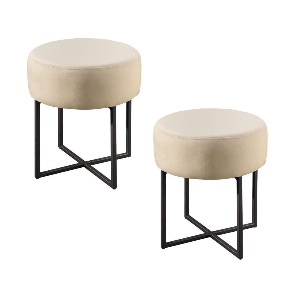 Conjunto - 2 Puffs Banqueta Otávio Base Metálica Preta Luxo