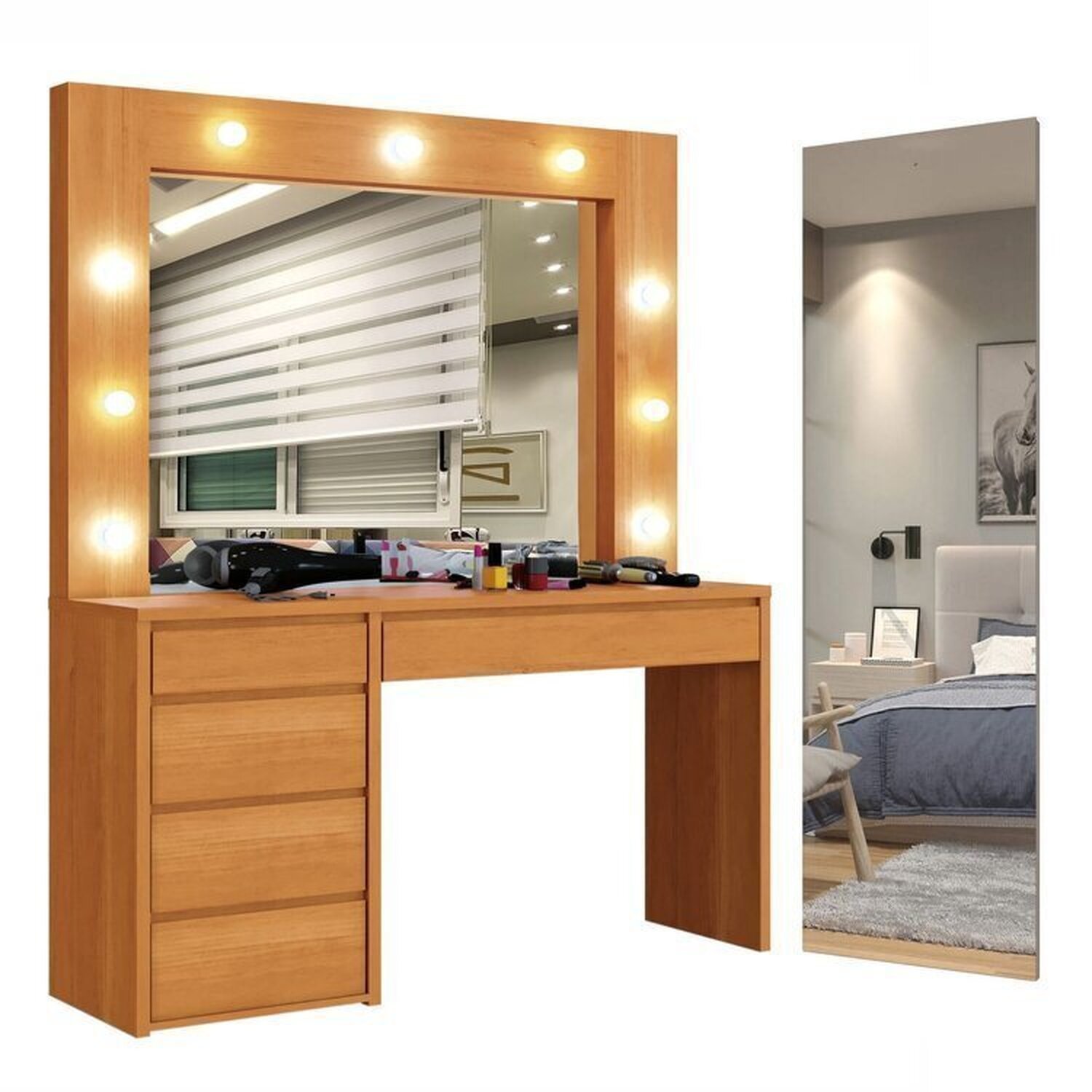 Conjunto Penteadeira Camarim 184x136cm Anne E Espelho Retangular 180cm Flora Naturale