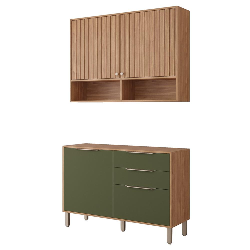 Cozinha Modulada Divina 2 Peças Com Armário Aéreo E Balcão 120cm Freijó/off White - Mgm