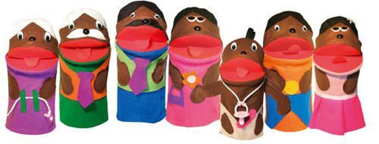 - Fantoches Família Negra Com 7 Personagens Em Feltro