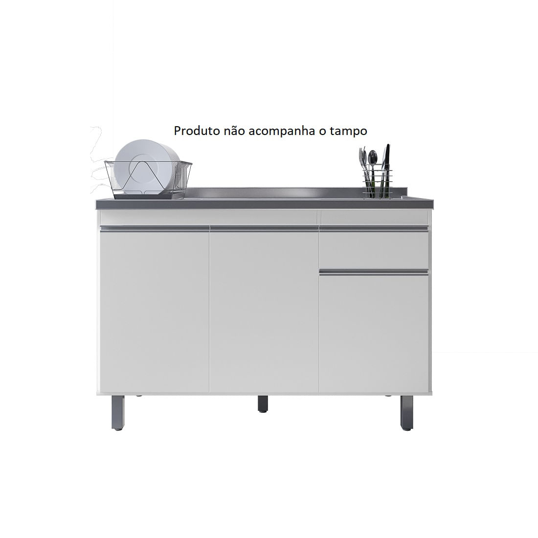 - Gabinete P/ Pia De Inox 120cm Branco 3 Portas 1 Gaveta S/ Tampo