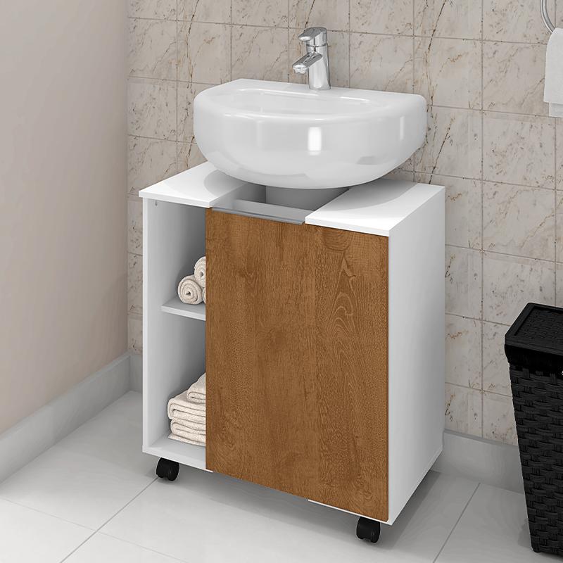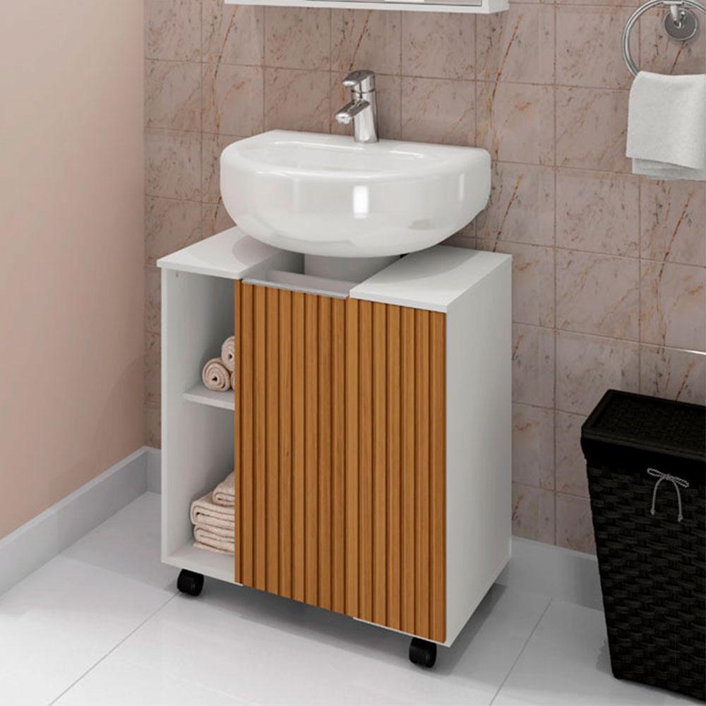 Gabinete Pequin Armario De Banheiro Para Pia De Coluna Pistache/naturale