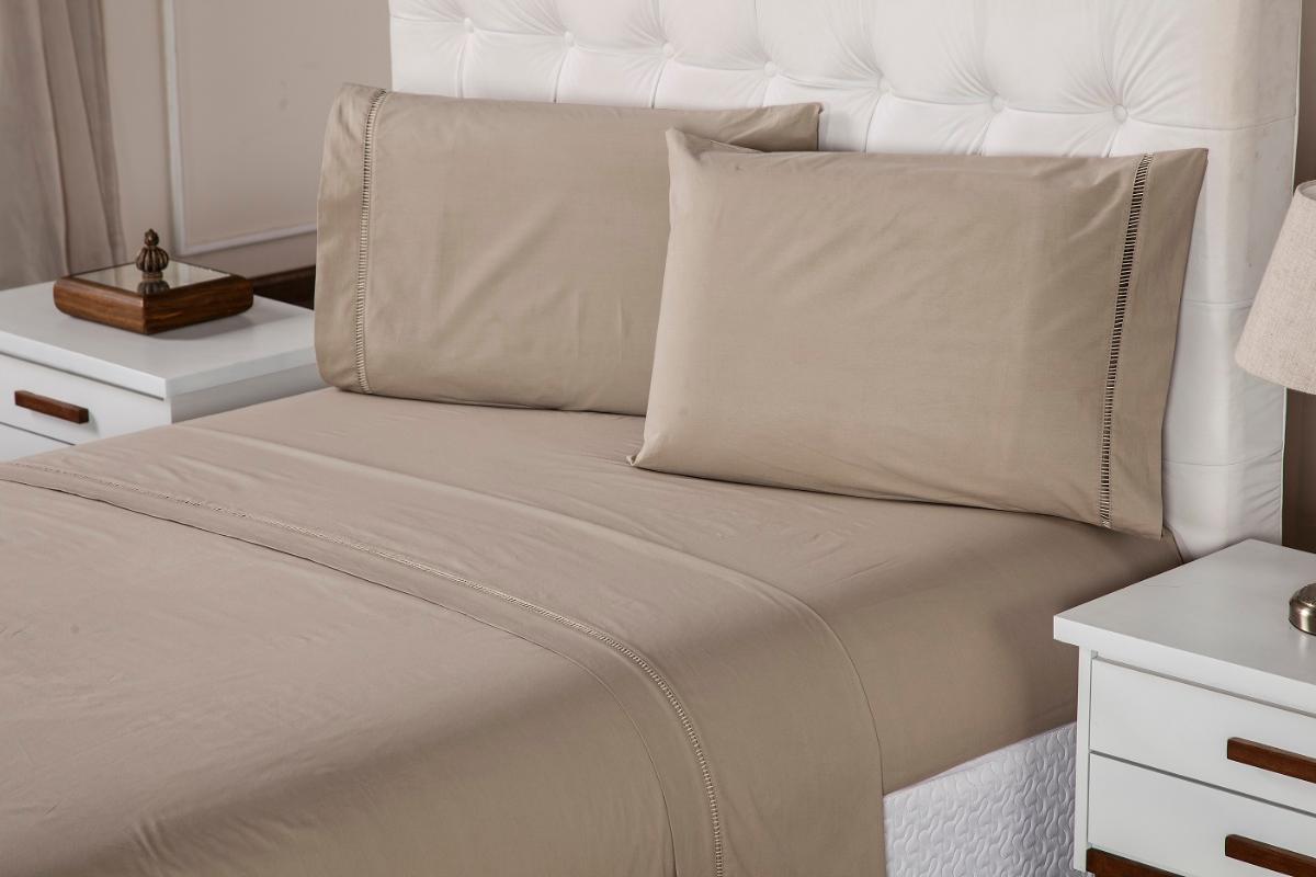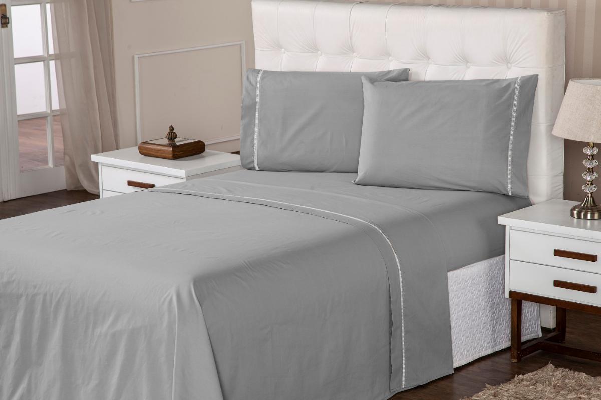 - Jogo de Lençol Percal 400 Fios Suave Feito Algodão Casal 3 Peças Prata Casa Dona