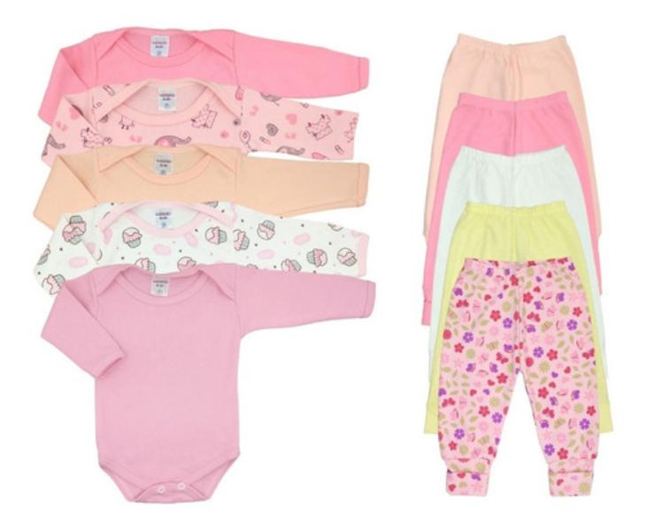 - Kit 10 Pçs Roupa Bebê Body Manga Longa e Mijão Menino Menina
