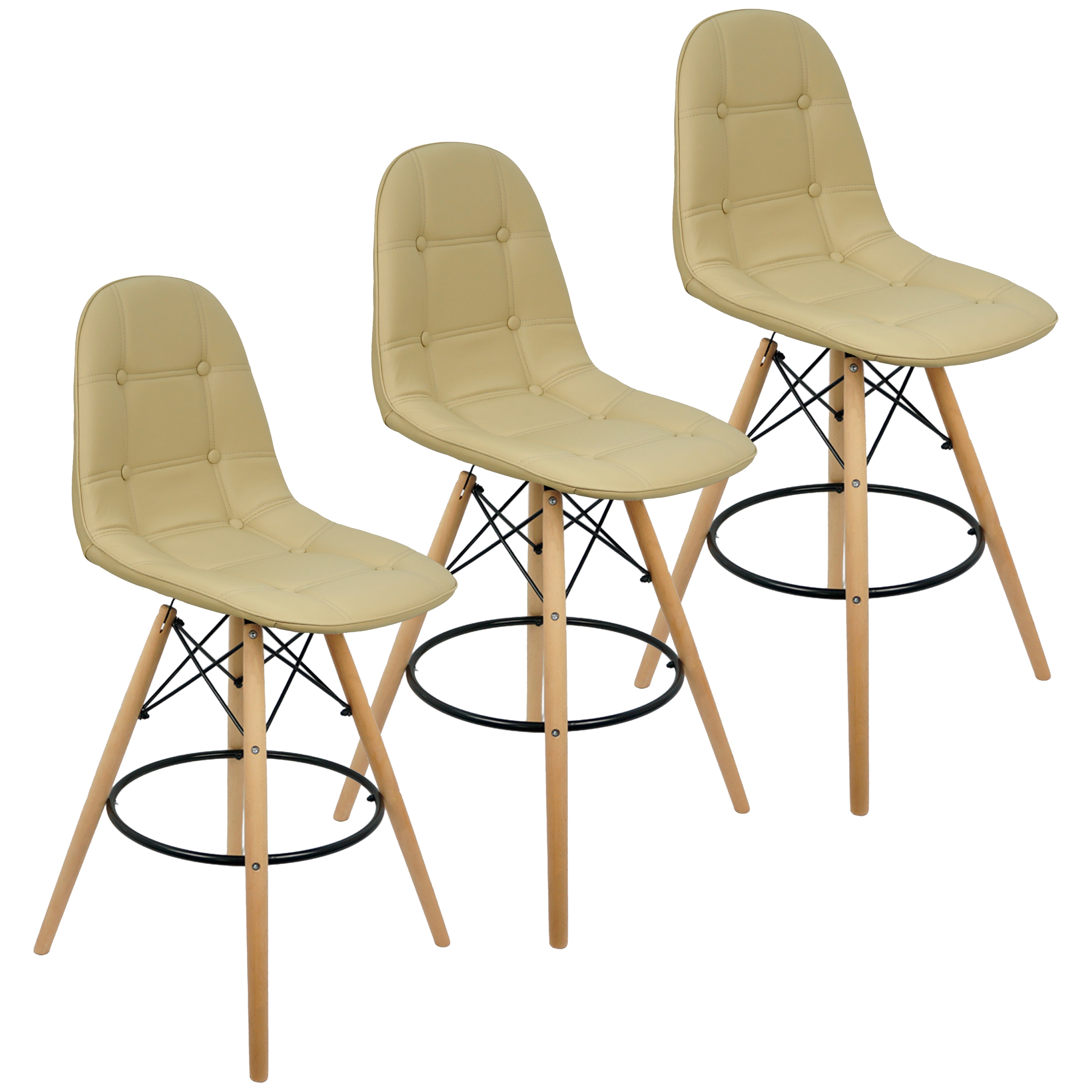 - Kit 3 Banquetas Botonê Eiffel Assento Couro Base Fixa Madeira