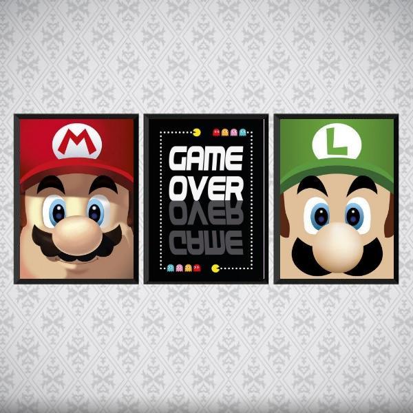 - Kit 3 Quadros Vídeo Game Personagens 45x34cm