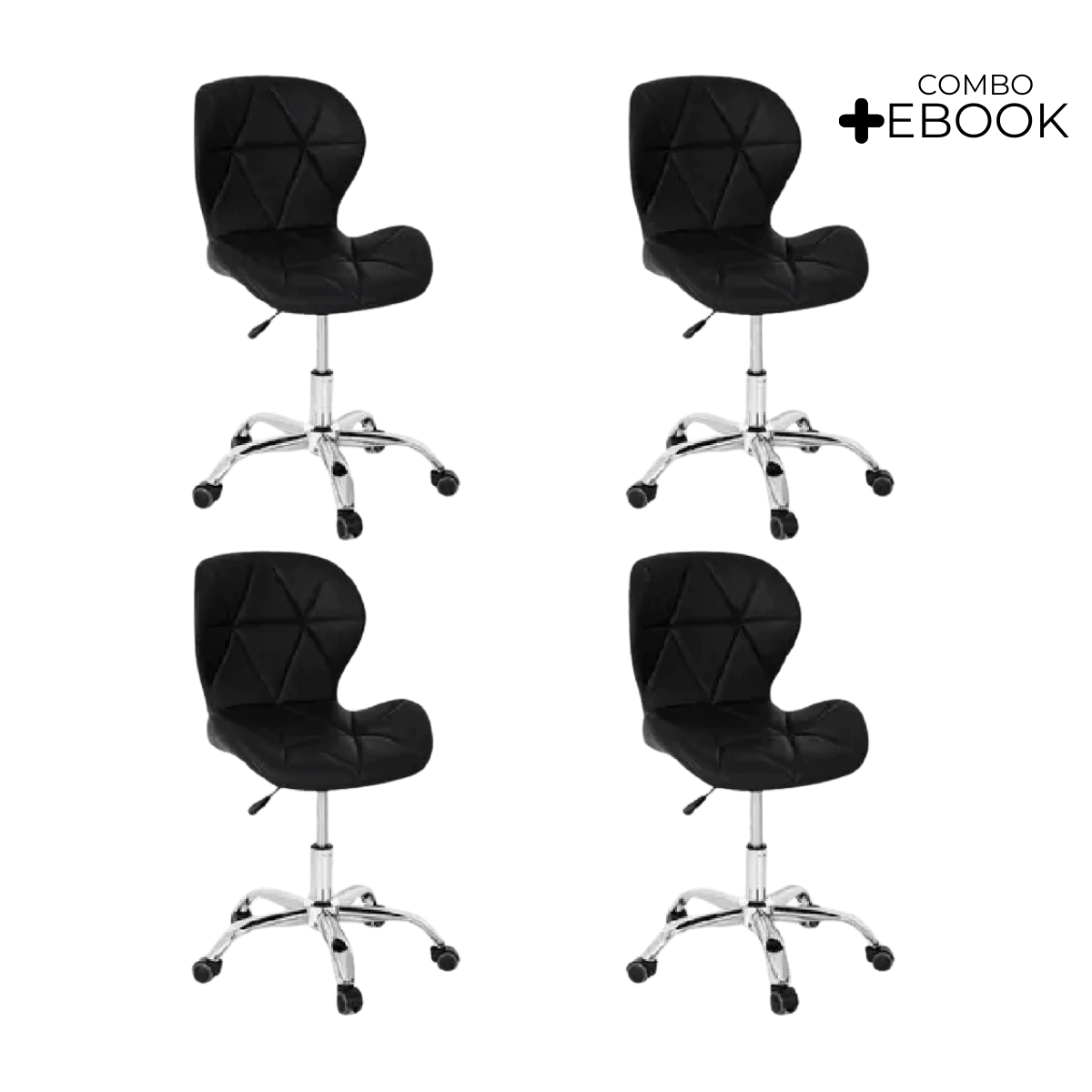 - Kit 4 Cadeiras Office Eiffel Slim Ajustável Base Giratória - Preta