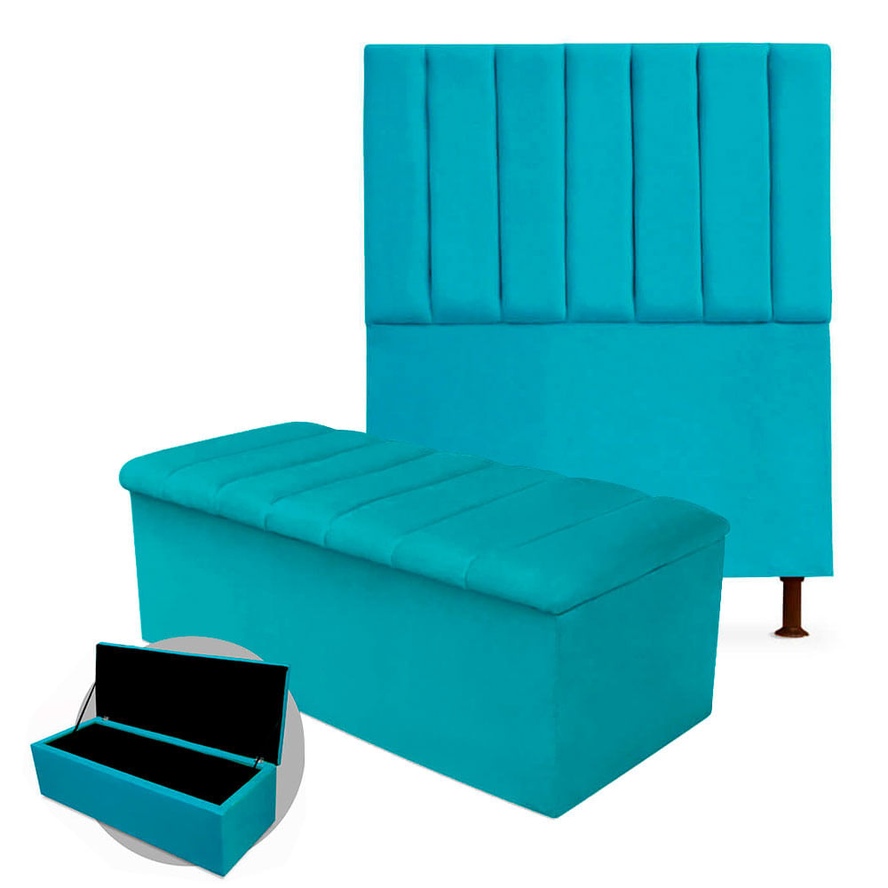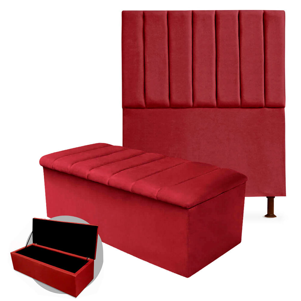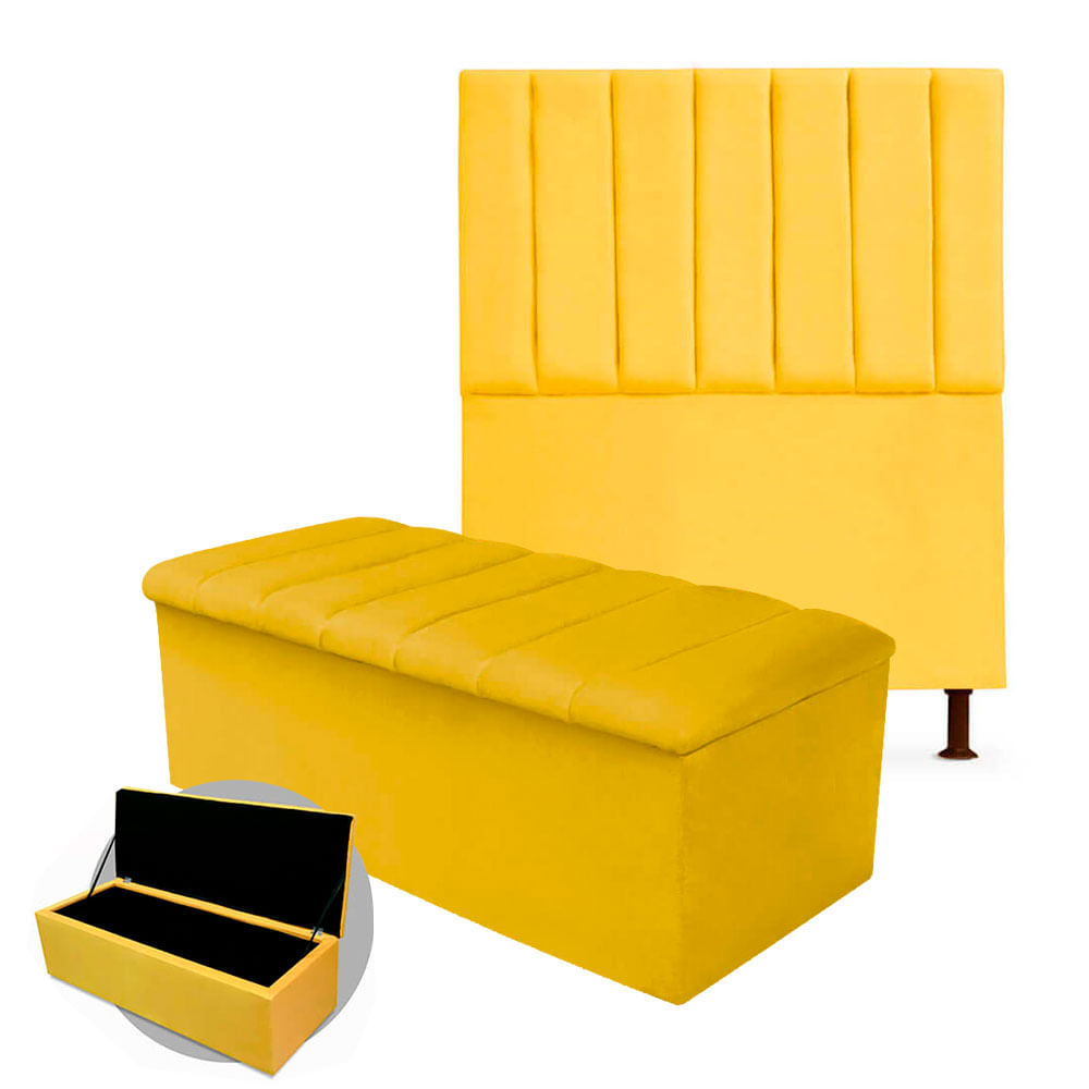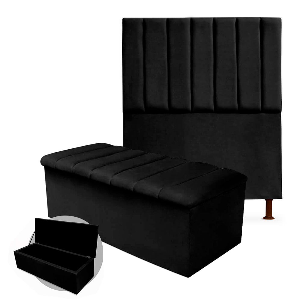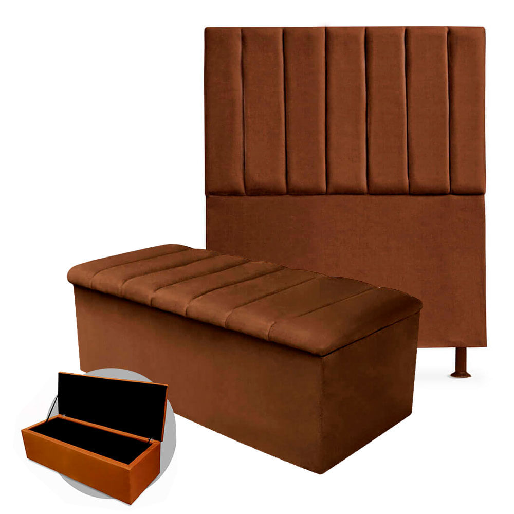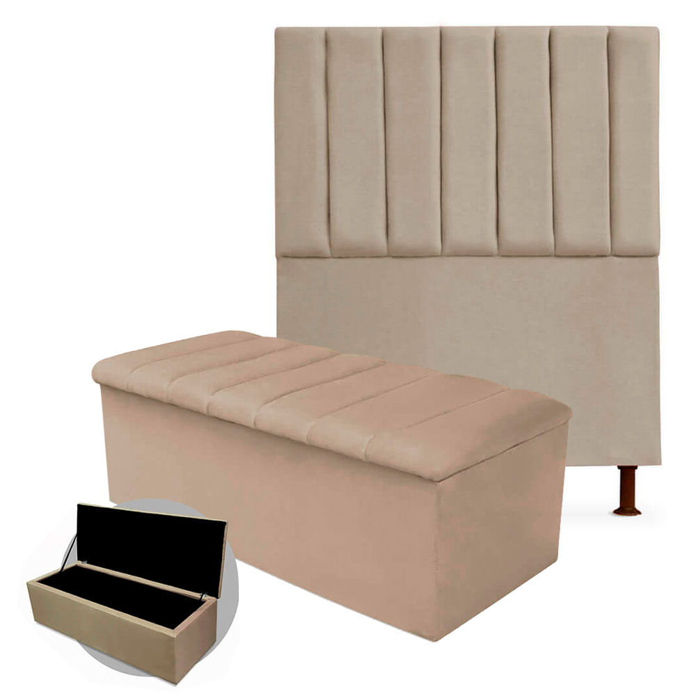 - Kit Cabeceira + Calçadeira Baú Cancun Solteiro 100cm Suede - Ecotec Decor