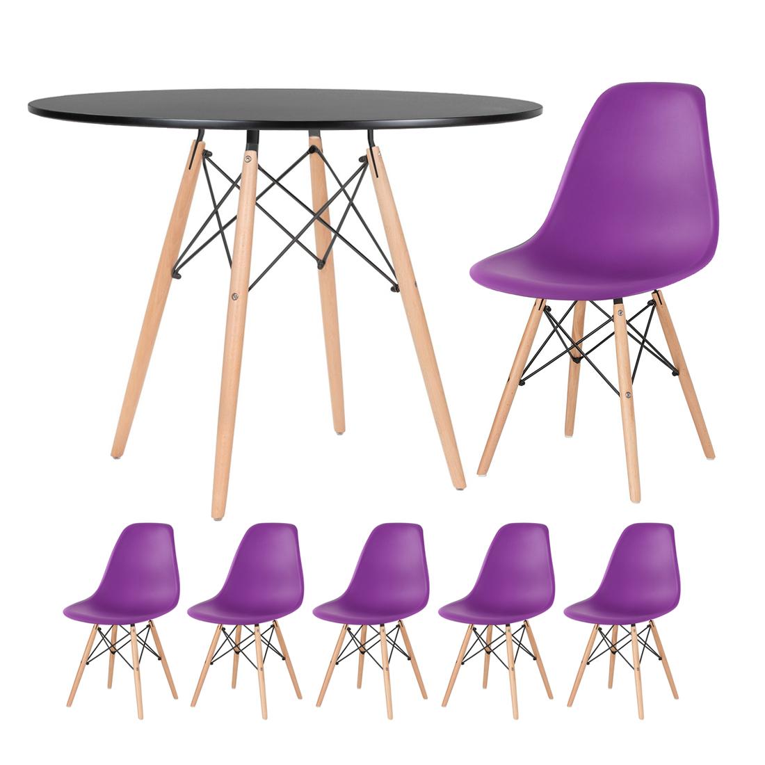 - Kit - Mesa Redonda Eames 100 Cm Preto + 5 Cadeiras Eiffel Dsw Azul Petróleo