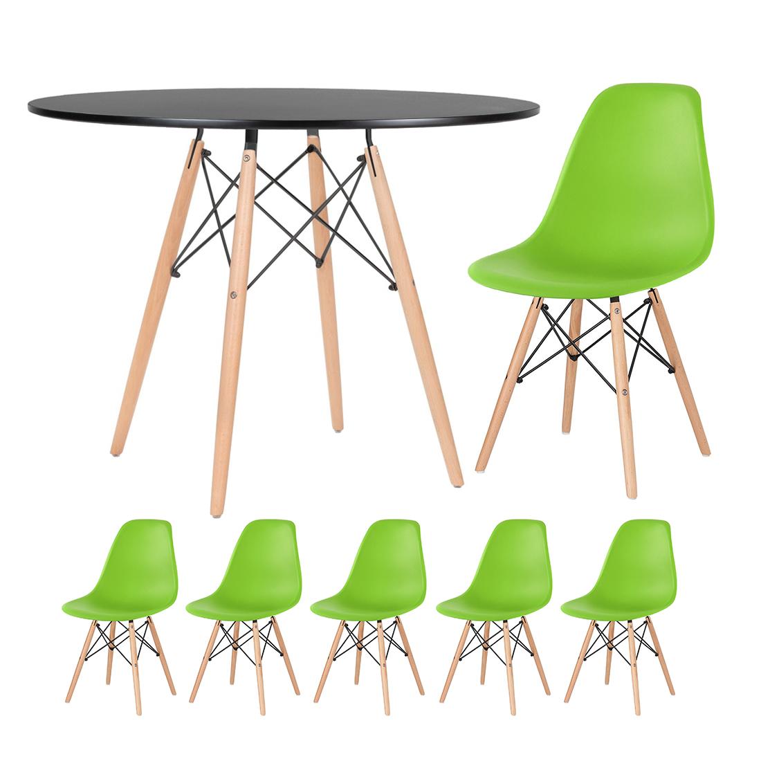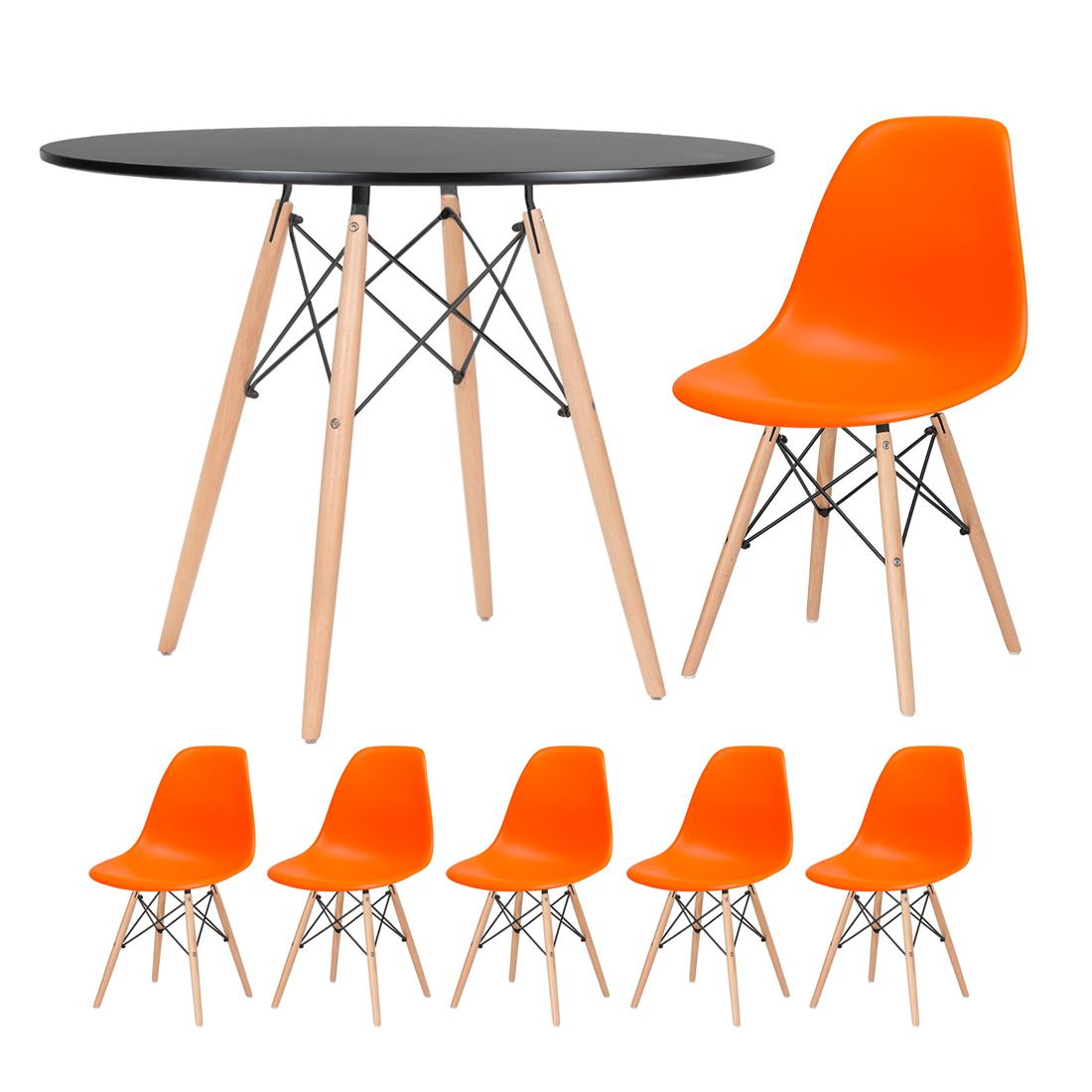 Kit - Mesa Redonda Eames 100 Cm Preto + 5 Cadeiras Eiffel Dsw Roxo