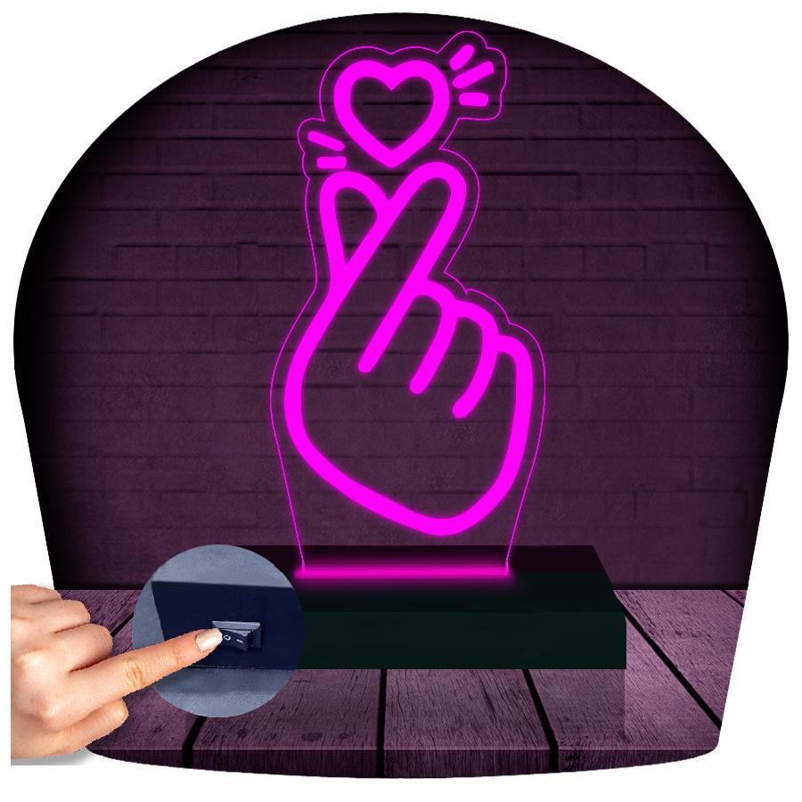 Luminária Led 3d | Dia Dos Namorados Coração Coreano K-pop