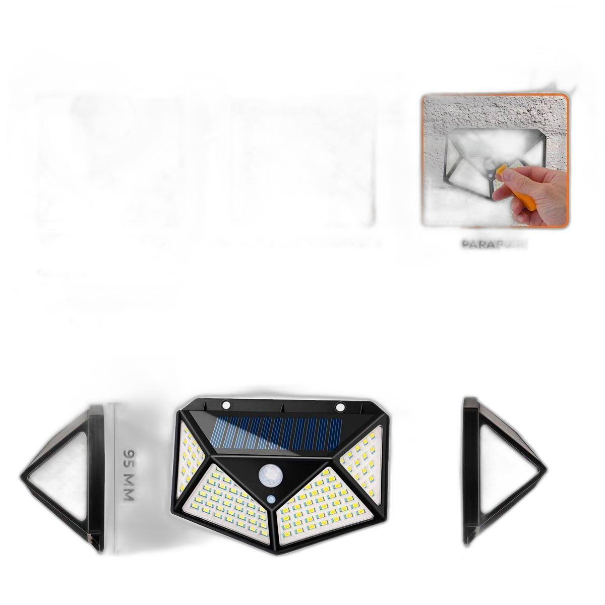 Luminárias Solar Parede 100 Leds Sensor Presença Com 3 Funções