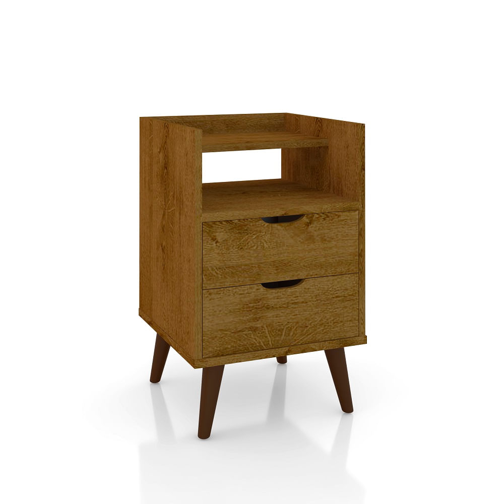 - Mesa De Cabeceira Retrô Com 2 Gavetas 1 Nicho E Pés Palito