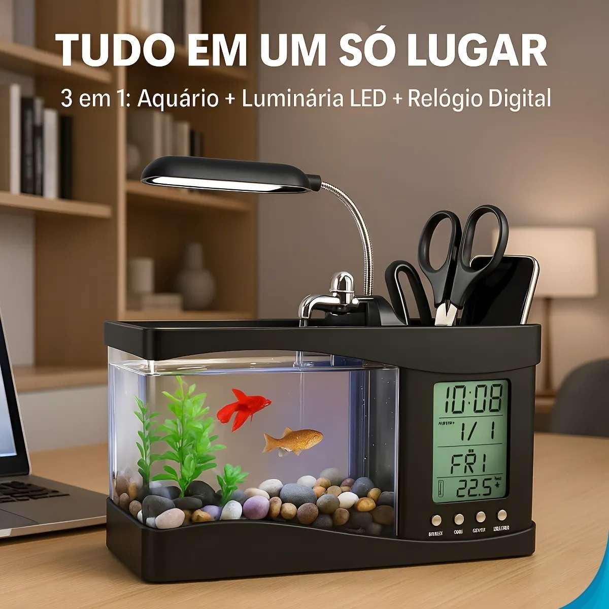 - Mini Aquário Com Relógio E Iluminação Led Moderno
