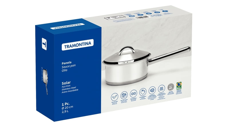 Mais Saudável: Por Ser Feita De Aço Inoxidável, A Panela Tramontina Não Libera Nenhum Tipo De Resíduo Nas Suas Receitas. Fácil De Usar: Uma Panela Prática Para Todas As Suas Receitas E Que Faz Bonito Em Qualquer Tipo De Fogão: Gás, Elétrico, Vitrocerâmico E Indução. Ainda Possui Tampa Com Saída De Vapor E Encaixe Perfeito. Mais Durável: O Inox Tramontina É Uma Matéria-prima Nobre, Resistente E Que Vai Fazer Bonito Por Muito Mais Tempo Na Cozinha. Economiza Tempo E Energia: O Segredo Está No Fundo Triplo (aço Inox + Alumínio + Aço Inox), Que Distribui O Calor Uniformemente, Proporcionando Um Cozimento Mais Rápido. Por Isso, Você Pode Manter O Fogo Baixo Durante Todo O Preparo E, Assim, Poupar Energia. Além Disso, A Panela Toda Em Aço Inox Pode Ir Ao Forno Para Gratinar Ou Finalizar Pratos, Na Temperatura Máxima De 260°c. Fácil De Limpar: Deixar Sua Panela Brilhando É Simples, Você Só Precisa De Água, Sabão E Uma Esponja Macia. Se Preferir, É Só Colocar Na Máquina De Lavar.