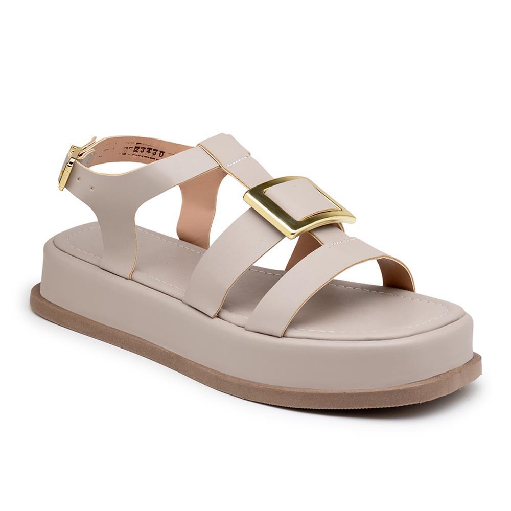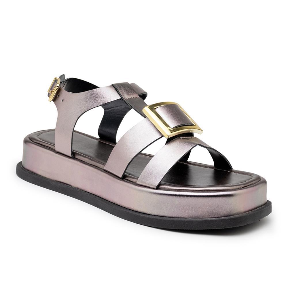 Papete Feminina Sandália Flatform Fivela Casual Moderna Prata 33