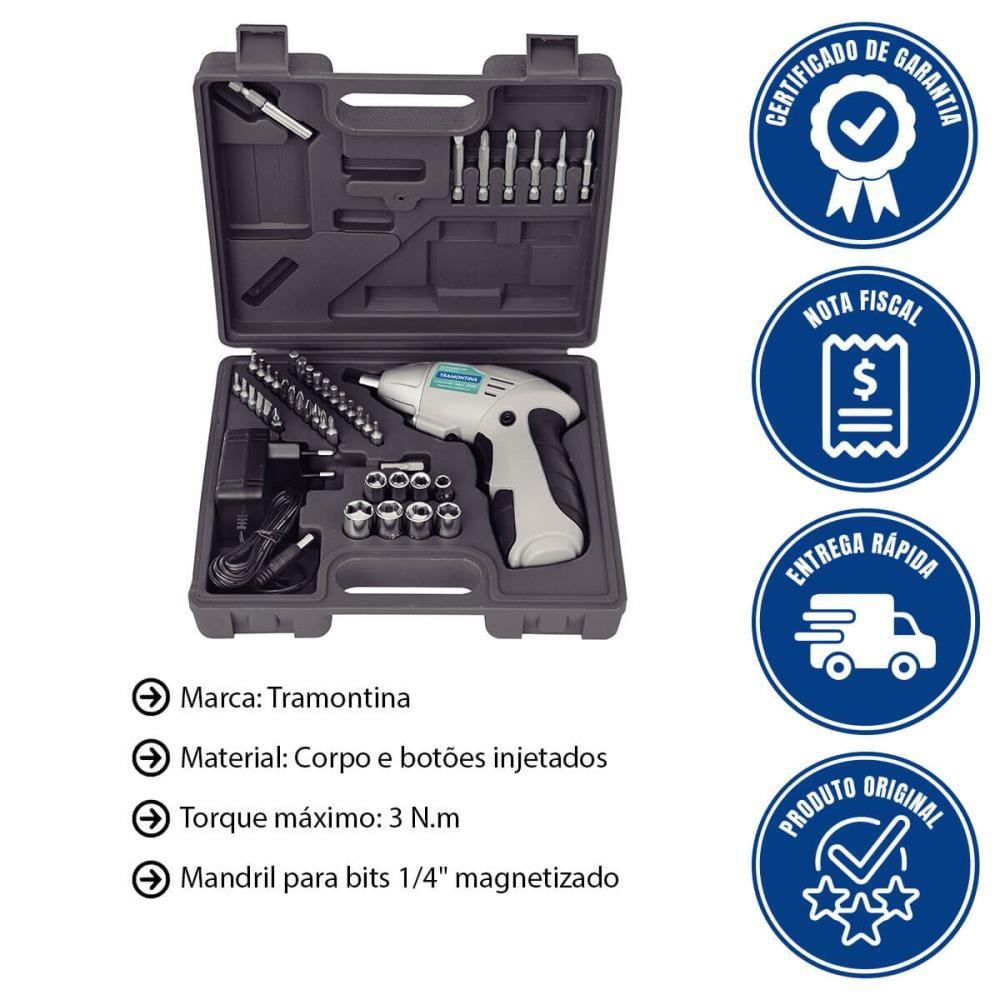 - Parafusadeira 1/4" Tramontina 46 Peças Para Uso Doméstico A Bateria Ni-cd 4,8v Com Maleta 42380046