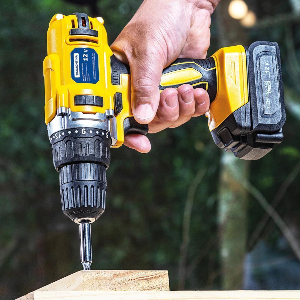 Parafusadeira Furadeira 12v À Bateria 16 Peças Tramontina