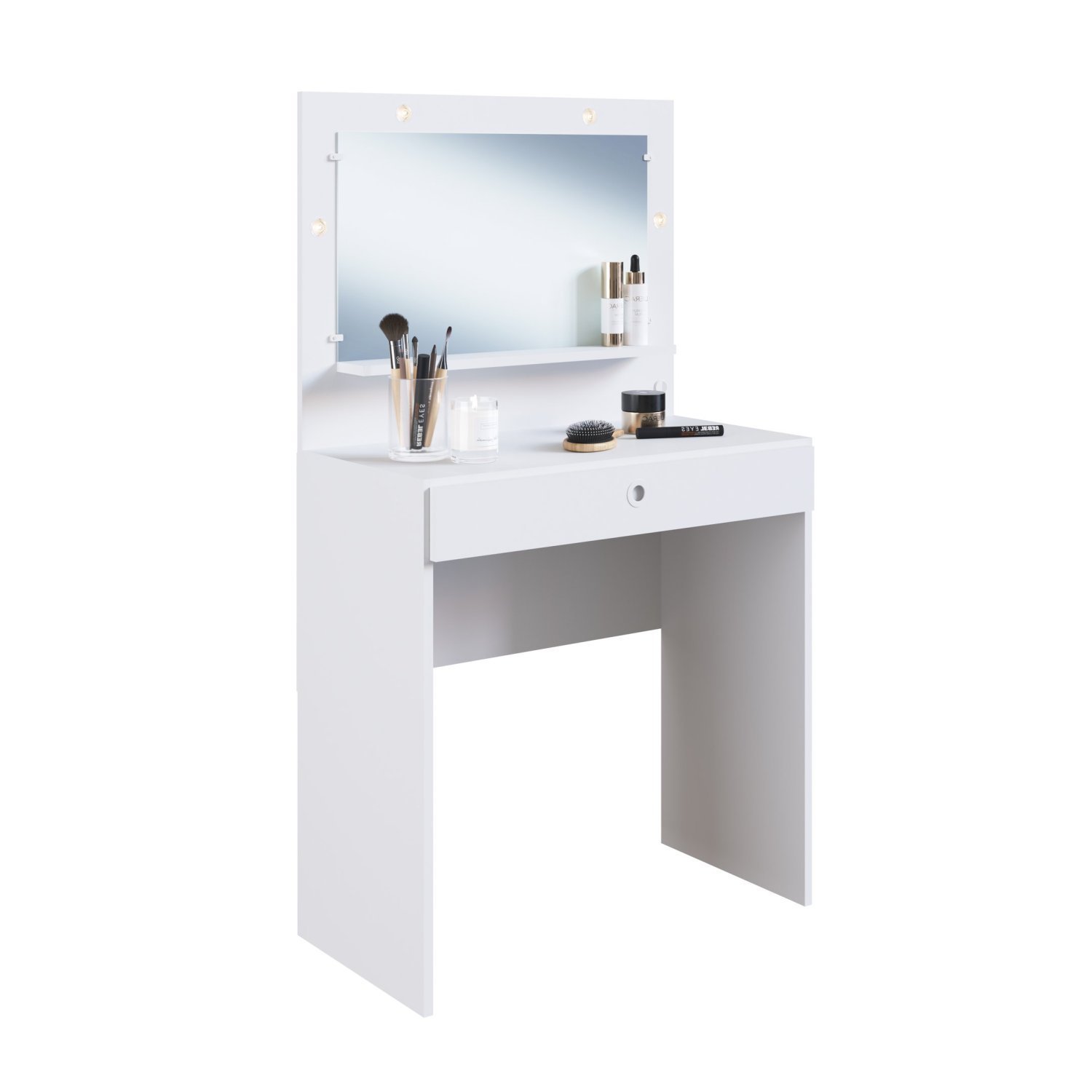 Estilo: Moderno | Peso (kg): 15.1 | Garantia: 03 Meses | Altura (cm): 127.8 | Acabamento: Finish Foil | Largura (cm): 72 | Possui Pés: Sim | Possui Vidro: Sim | Possui Portas: Não | Possui Gavetas: Sim | Possui Moldura: Não | Possui Rodízio: Não | Suporta Até (kg): 27 | Possui Espelhos: Sim | Profundidade (cm): 38 | Escala De Brilho: Semi-brilho | Gaveta Com Chave: Não | Material Dos Pés: Mdp | Serviço Montagem: 114259443 | Acompanha Lâmpada: 4 | Origem Do Produto: Nacional | Possui Iluminação: Sim | Acompanha Banqueta: Não | Ambiente Principal: Quarto | Formato Do Espelho: Retangular | Material Da Gaveta: Mdp | Material Principal: Mdp | Possui Prateleiras: Não | Sapatas Niveladoras: Sim | Acabamento Da Gaveta: Finish Foil | Possui Porta Objetos: Sim | Material Da Prateleira: Mdp | Peso Máximo Por Gaveta: 5 | Quantidade De Espelhos: 1 | Acabamento Da Prateleira: Finish Foil | Tipo De Puxador Da Gaveta: Embutido | Peso Máximo Por Prateleira: 5 | Tipo De Corrediça Da Gaveta: Metálica Simples | Escala De Brilho Da Prateleira: Semi-brilho | Fabricante: Art In Móveis | Marca: Art In Móveis | Tonalidade: Branco | Cor Do Produto: Branco | Itens Inclusos: 1 Penteadeira, Kit Ferragens E Manual De Montagem | Cor Predominante: Branco | Quantidade De Gavetas: 01 Gaveta