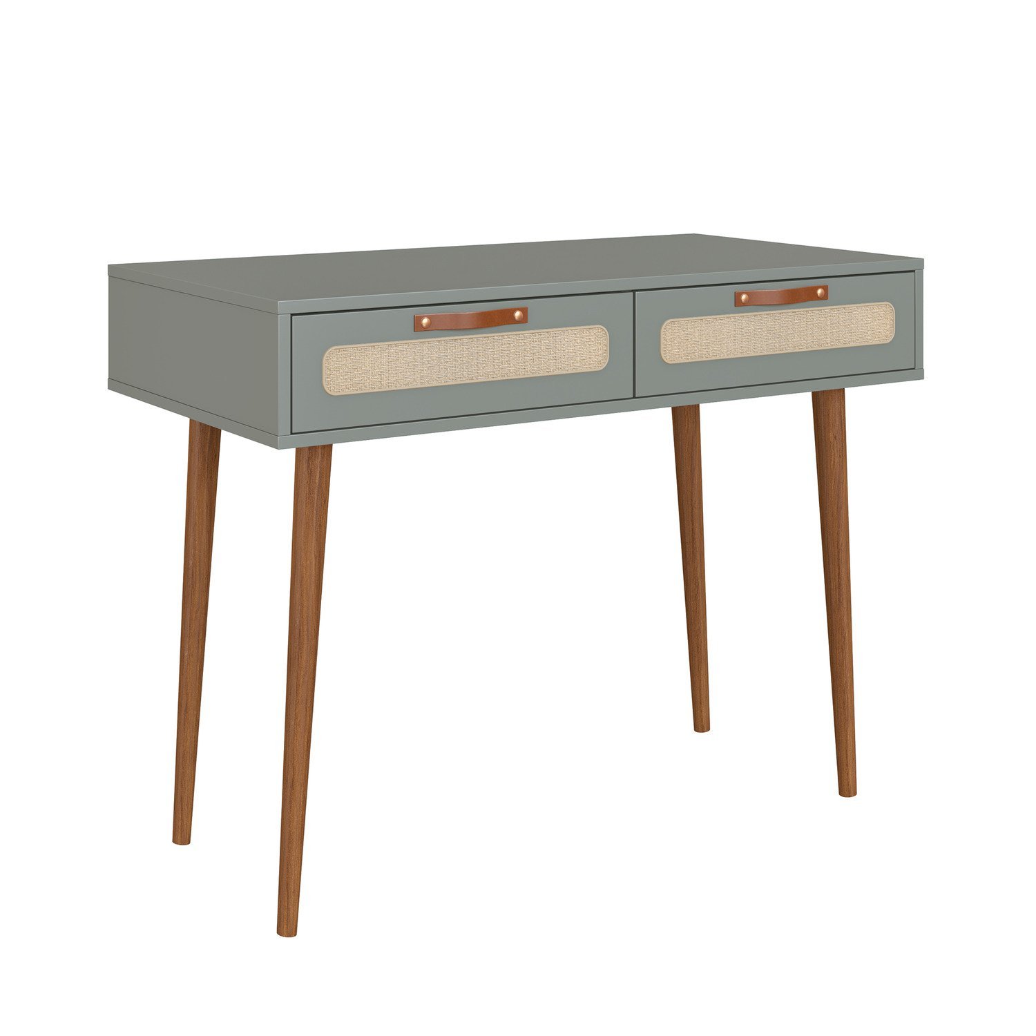 Penteadeira Retrô 100cm, Uma Peça Versátil E Encantadora Para Transformar Seu Espaço. Fabricada Em Mdp Bp 15mm, Seu Design Elegante Destaca-se Pelas Frentes De Gaveta Com Acabamento Em Tela Sustentável, Adicionando Um Toque De Sofisticação Ao Ambiente. O Puxador Em Couro Proporciona Um Charme Adicional, Enquanto Os Pés Em Madeira Natural Garantem Estabilidade E Um Toque De Autenticidade. Esta Penteadeira Não É Apenas Um Móvel Bonito, Mas Também Versátil, Podendo Ser Utilizada Como Penteadeira Para Seus Rituais De Beleza, Aparador Para A Sala Ou Até Mesmo Como Uma Mesa De Escritório Estilosa. Com 100cm De Comprimento, Oferece Espaço Compacto Sem Comprometer A Funcionalidade.