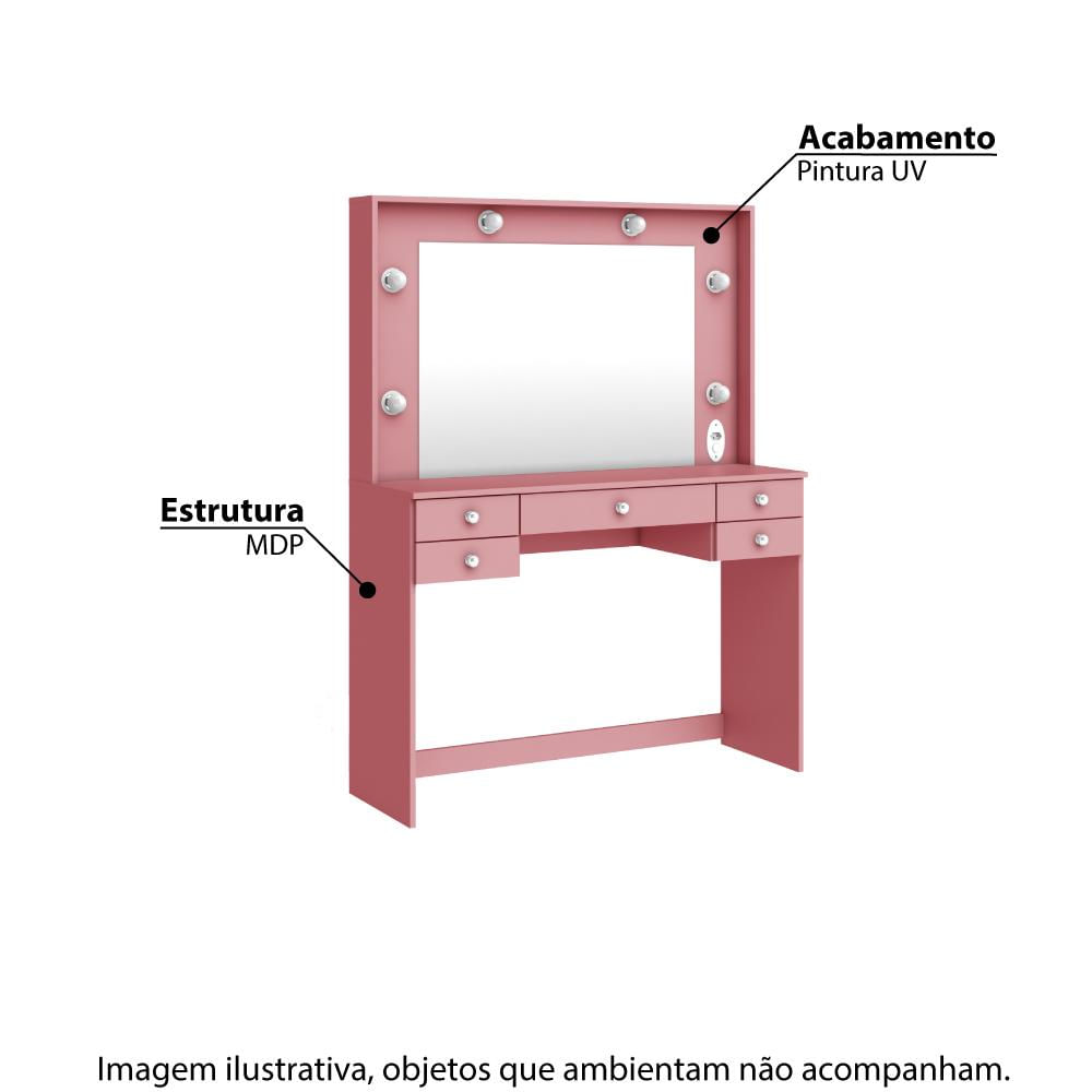 - Penteadeira 433 Com 5 Gavetas E Espelho - Rosa
