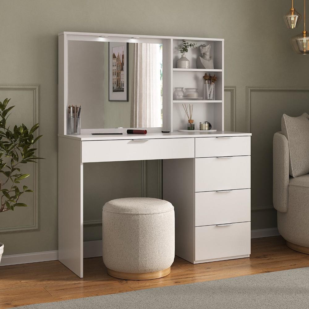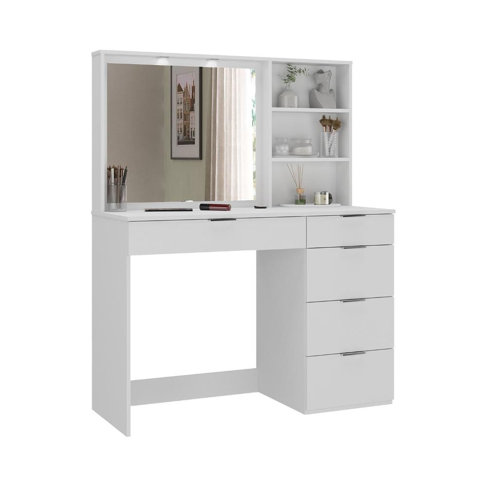 - Penteadeira 5 Gavetas Com Espelho E Led 8400 Branco