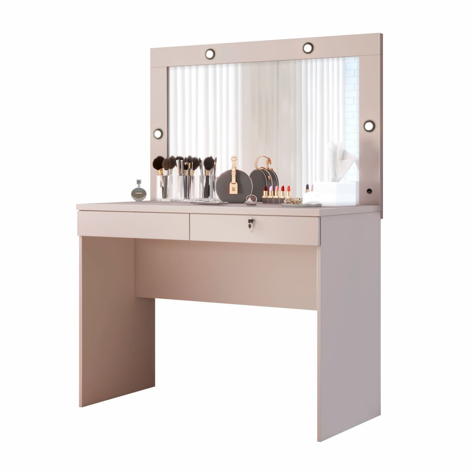 Camarim E Penteadeira Capricho É O Produto Ideal Para Te Auxiliar No Momento Da Make. Produzido Em Mdp 15mm, Tampo 25mm, Gavetas Com Corrediças Telescópica, Com Chave, Iluminação Em Led (inclusa) E Espelho.