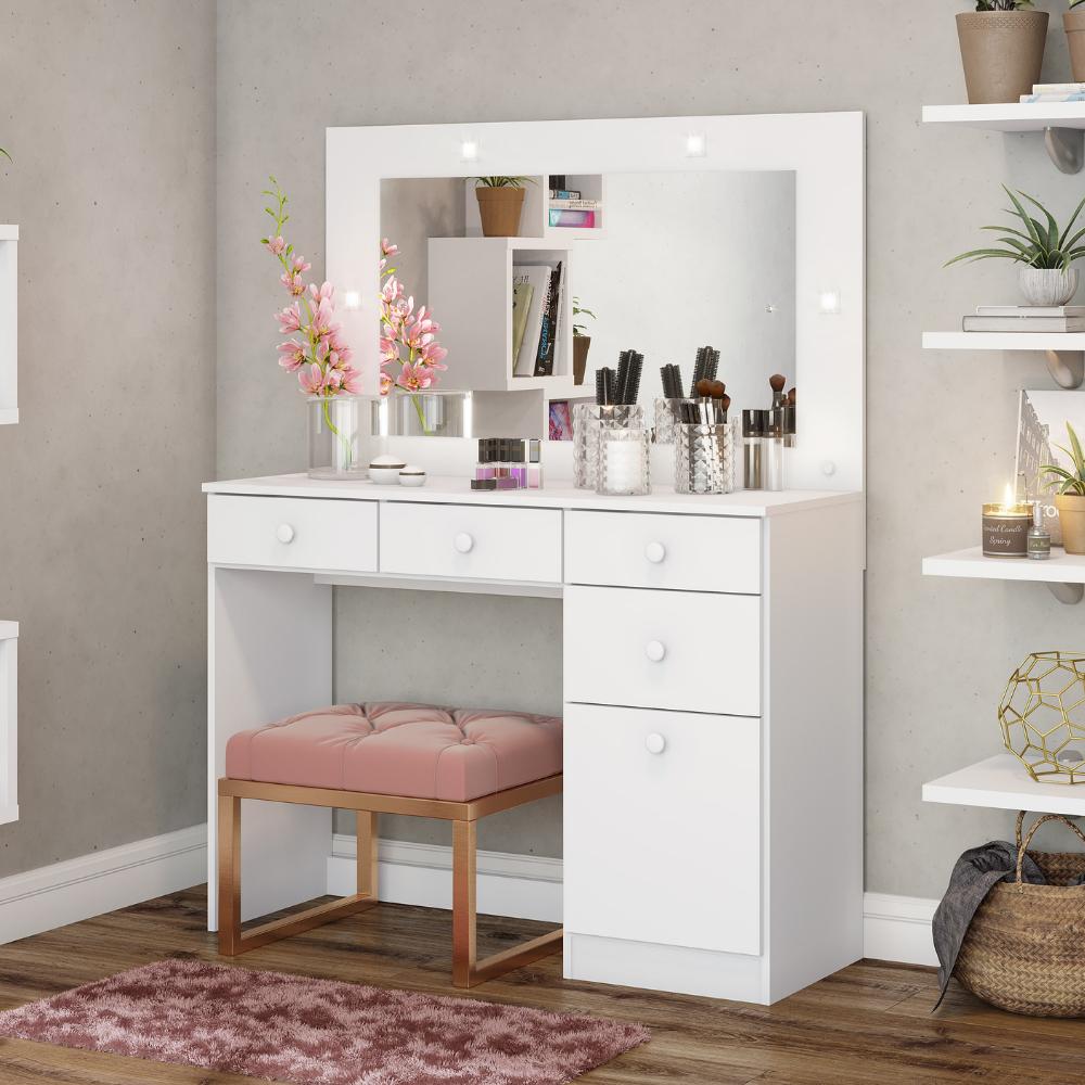 - Penteadeira Camarim Com Espelho Led 4 Gavetas 1 Porta Magnólia