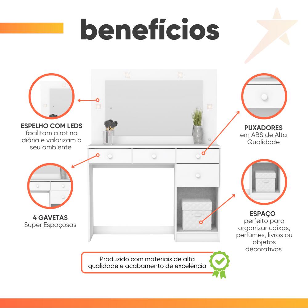 | Itens Inclusos | 01 Penteadeira, 01 manual de montagem e Kit Parafusos |