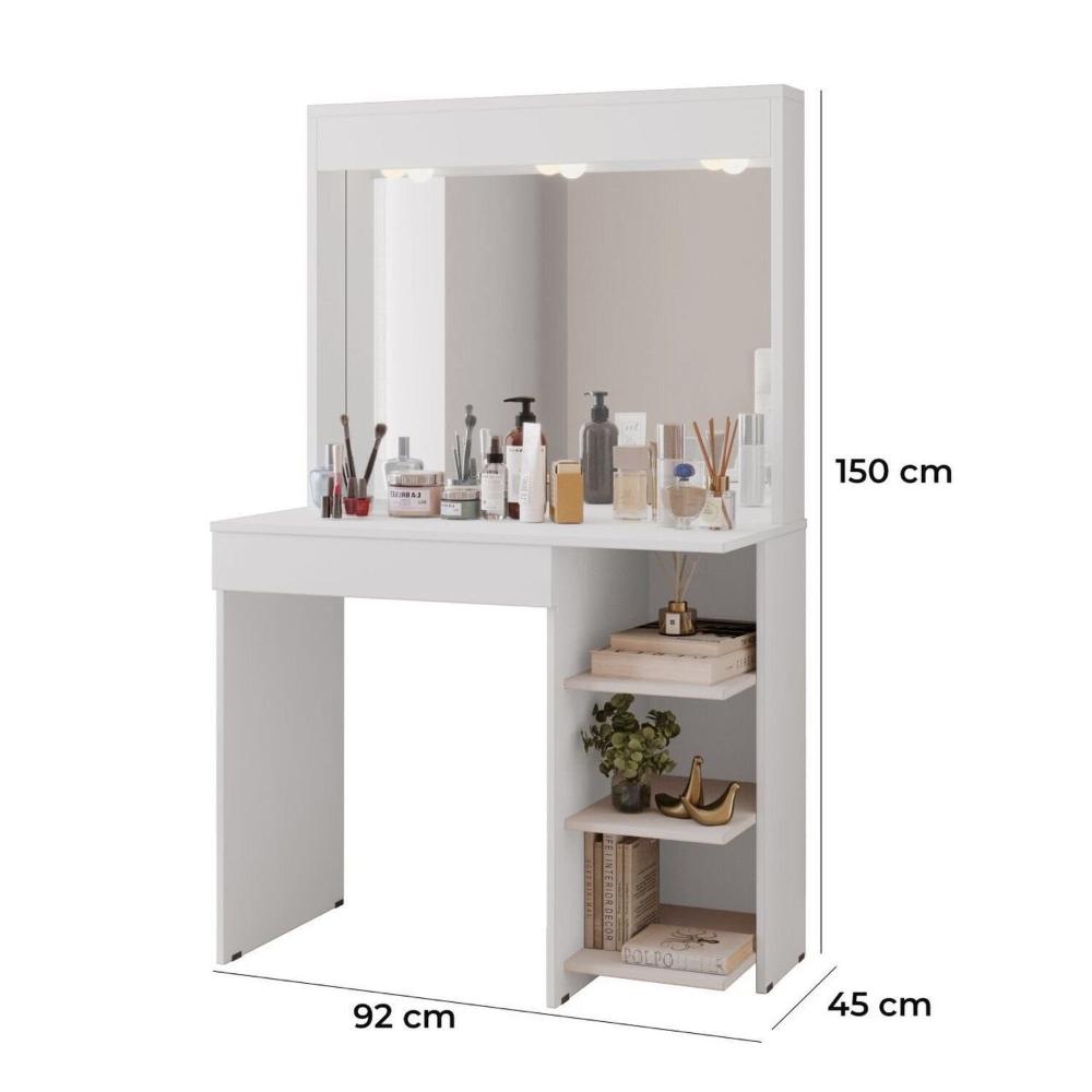 Penteadeira Camarim Eliza 1 Gaveta -150x92cm Branco. Penteadeira Camarim Eliza É A Peça Perfeita Para Transformar O Seu Espaço De Beleza Em Um Verdadeiro Estúdio De Glamour. Com Um Design Sofisticado E Funcional, Ela Proporciona Um Ambiente Ideal Para Suas Rotinas De Maquiagem E Cuidados Pessoais, Além De Acrescentar Um Toque De Elegância E Estilo Ao Seu Quarto Ou Closet, Contando Com 3 Bocal De Luz Para Você Arrasar Na Iluminação.