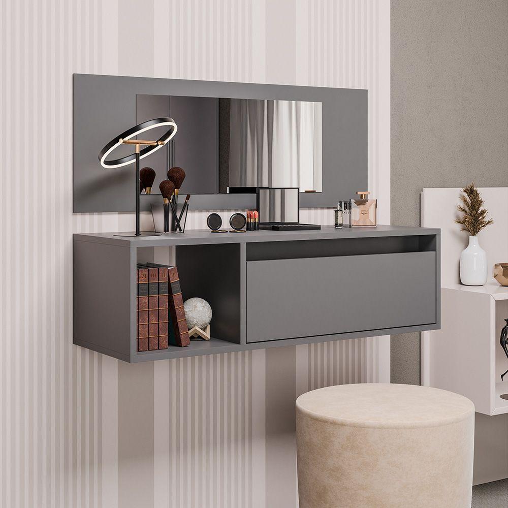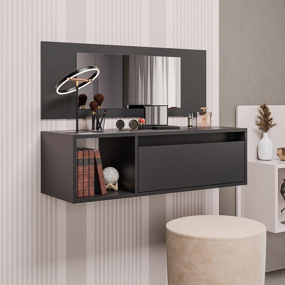 Penteadeira Camarim Eva Suspensa É A Escolha Perfeita Para Quem Busca Praticidade E Sofisticação Em Um Único Móvel. Ideal Para Quartos E Closets, Possui Um Design Moderno E Minimalista, Com Espelho Integrado E Uma Porta Para Armazenamento. Sua Estrutura Suspensa Garante Mais Organização E Aproveitamento De Espaço , Proporcionando Um Ambiente Mais Clean E Funcional.