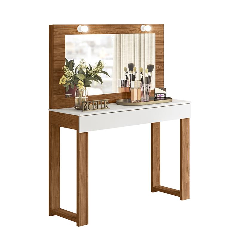 - Penteadeira Camarim Gala 1 Gaveta E Soquetes Para Lâmpadas Branco Fosco