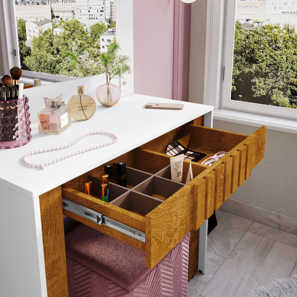 - Penteadeira Camarim Rouge Com Espelho Branco Naturalle Bechara
