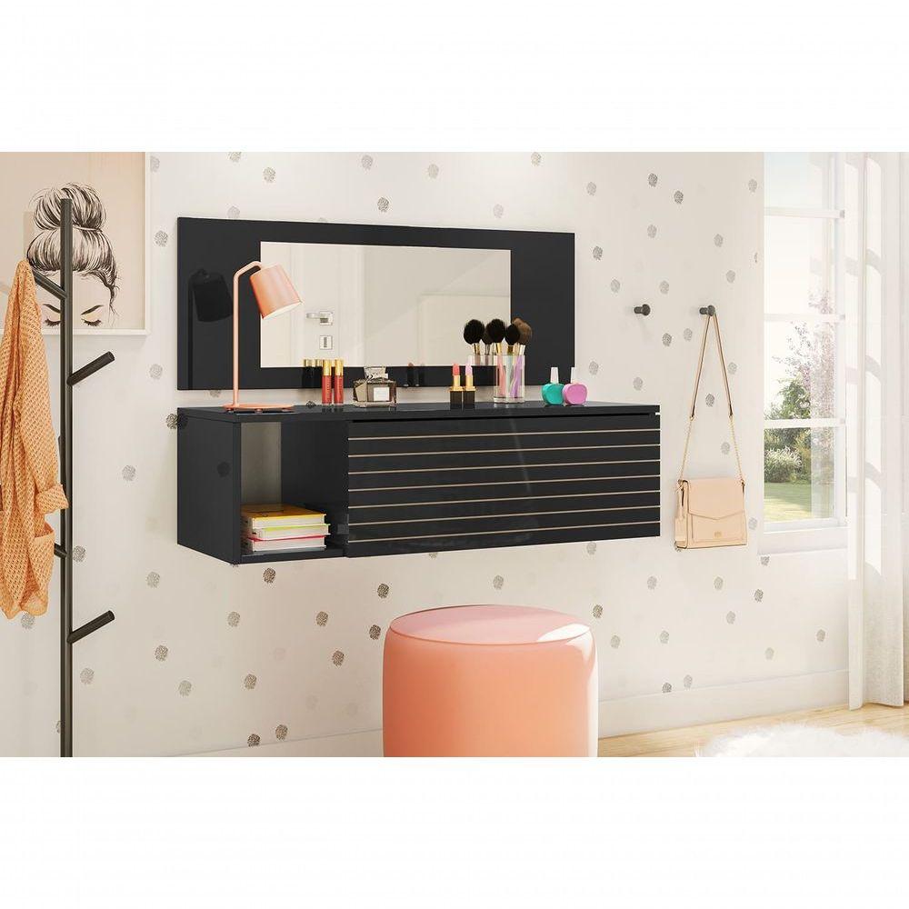 - Penteadeira Camarim Suspensa Com Espelho E Gaveta Joy Preto