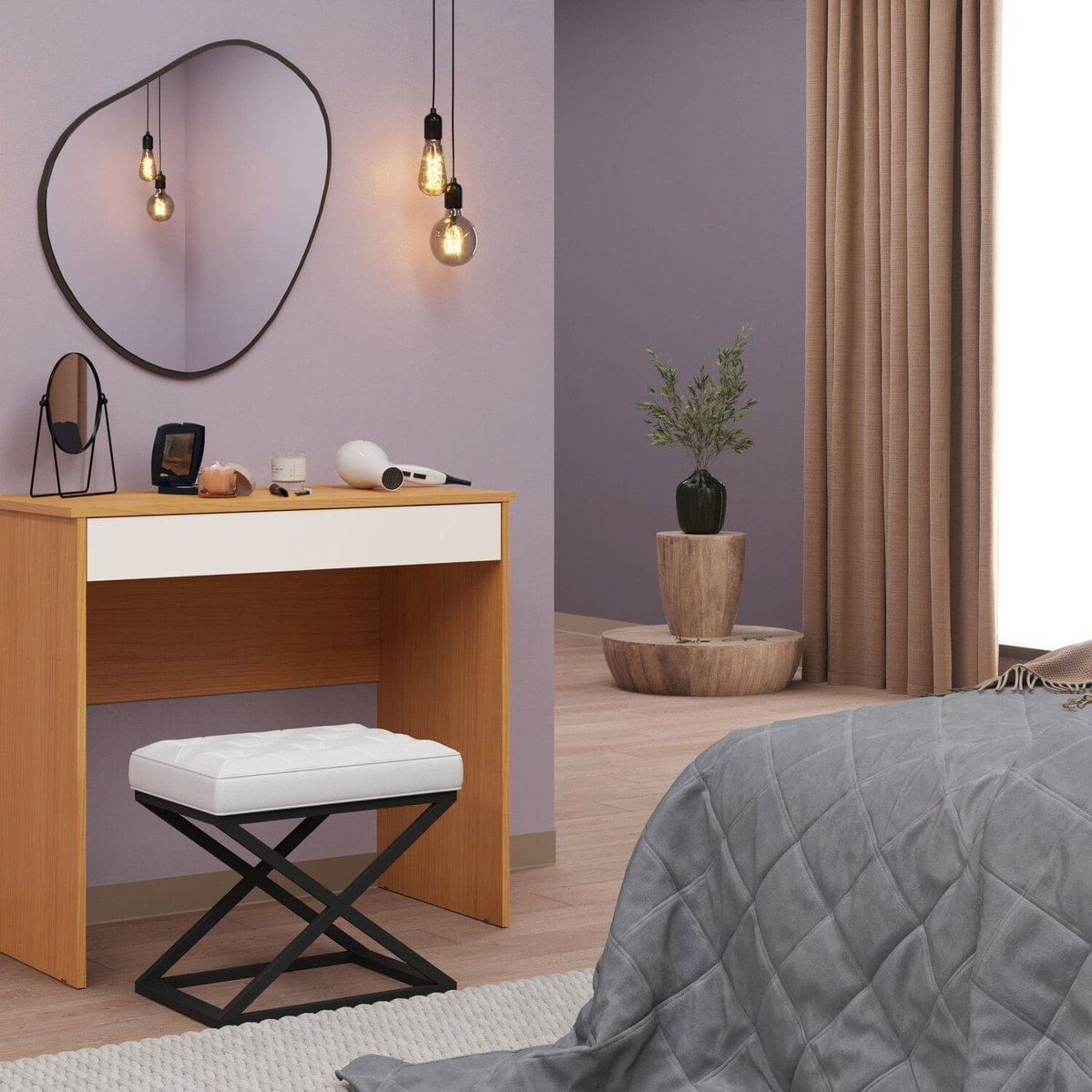 A Penteadeira Bari Sem Espelho , É Uma Escolha Perfeita Para Quem Quer Praticidade , Porém Tem Um Espaço Pequeno. A Penteadeira Possui Uma Gaveta Onde É Possível Acondicionar Produtos E Manter Organizado O Ambiente .