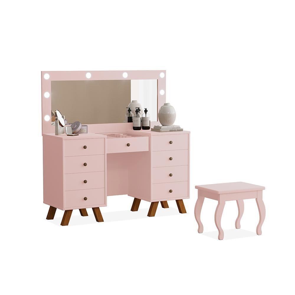 Penteadeira Com Assento Memphis Rose Essa Penteadeira Conta Com Um Design Elegante E Clássico, Somando Na Decoração De Seu Quarto Ou Closet, Com Bastante Espaço Para Organização Pessoal. Conta Com Um Largo Espelho, Gavetas Laterais E Uma Gaveta Central. Acompanha Banqueta A Penteadeira É Feita Em Mdf. Medidas Da Penteadeira: Altura: 145 Cm Largura: 136.5 Cm Comprimento: 45 Cm Informações Da Penteadeira: Cor: Rose Material: Mdf Gavetas: Sim, (9) Pés: Sim, (8) Banqueta: Sim Itens Inclusos: 1 Penteadeira Manual De Montagem Kit Completo Para Montagem E Manual De Instruções Garantia: 3 Meses Contra Defeito De Fabricação Informações Adicionais: - Fotos Meramente Ilustrativas Do Produto No Ambiente. - Os Objetos Que Ambientam As Fotos Não Acompanham O Produto, - Verificar Descrição E Tamanho Do Produto Antes Da Compra. - Avaliar A Mercadoria No Ato Do Recebimento E Recuse Em Caso De Divergência Ou Avarias. - Mantenha As Informações De Contato E Endereço De Entrega Atualizados Para Entrarmos Em Contato Caso Necessário. - Limpar Com Flanela Ou Pano Macio Seco, Não Utilizar Produtos Abrasivos, Desengordurantes, Álcool Ou Solvente. Não Expor O Produto Diretamente À Luz Solar E À Umidade. - Sugerimos A Contratação De Um Montador Profissional Para A Montagem Do Produto. Não Nos Responsabilizamos Por Avarias Causadas No Ato Da Montagem. - Não Nos Responsabilizamos Pela Montagem E Desmontagem Do Produto No Ato Da Entrega E Devolução, Assim Como Os Custos Gerados Nestas Situações. - A Transportadora Entregará O Produto No Andar Térreo Do Endereço De Entrega. - Não Nos Responsabilizamos Por Subir Escadas, Corredores E Elevadores Ou Transporte Por Guincho Em Apartamentos.altura Do Produto (cm): 145 | Cor Predominante: Rose | Cores Do Produto (filtro De Cores): Rose | Peso Do Produto (kg): 75.5 | Conteúdo Da Embalagem: 1 Penteadeira | Possui Iluminação: Sim | Descrição Do Tamanho: 145 X 136.5 X 45 Cm | Comprimento Do Produto (cm): 45 | Instruções/cuidados: Limpar Com Pano Macio E Seco, Não Utilizar Produtos Abrasivos. | Possui Banqueta: Não | Possui Gavetas: 9 | Produto Precisa De Montagem?: Sim, A Montagem É Simples Mas Sugerimos A Contratação Do Nosso Serviço De Montagem (para Os Ceps Em Que O Serviço Está Disponível) Ou De Algum Profissional Experiente De Sua Preferência | Marca: Luapa | Produto: Penteadeira | Altura Do Produto Com Embalagem (cm): 51.5 | Peso Produto Com Embalagem (kg): 75.5 | Largura Produto Com Embalagem (cm): 68.5 | Material Para Filtro: Mdf | Material Principal: Mdf | Largura Do Produto (cm): 136.5 | Estado De Origem: Sp | Comprimento Produto Com Embalagem (cm): 136.5