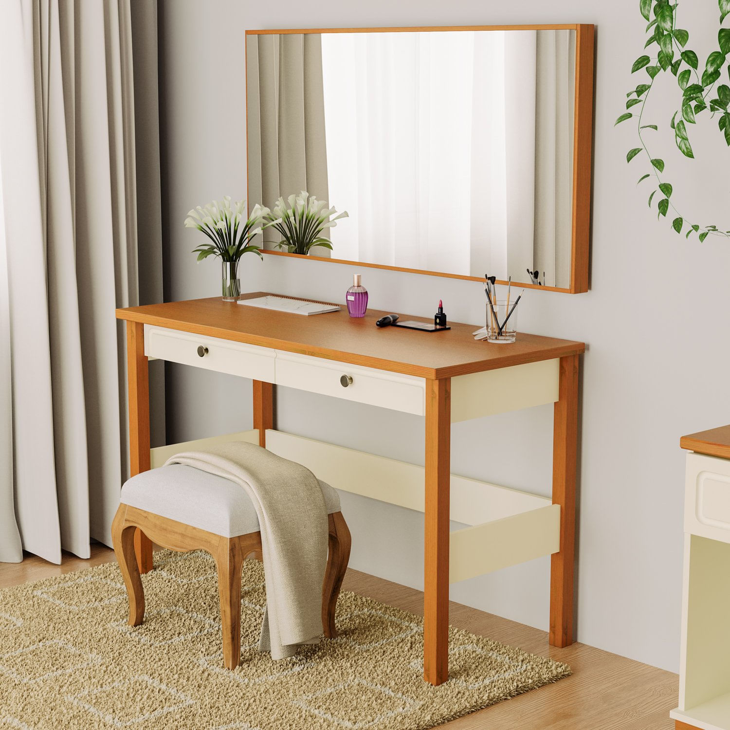 - Penteadeira Com Espelho 120 Cm Ananda Cabecasa Madeiramadeira Off-white/mel