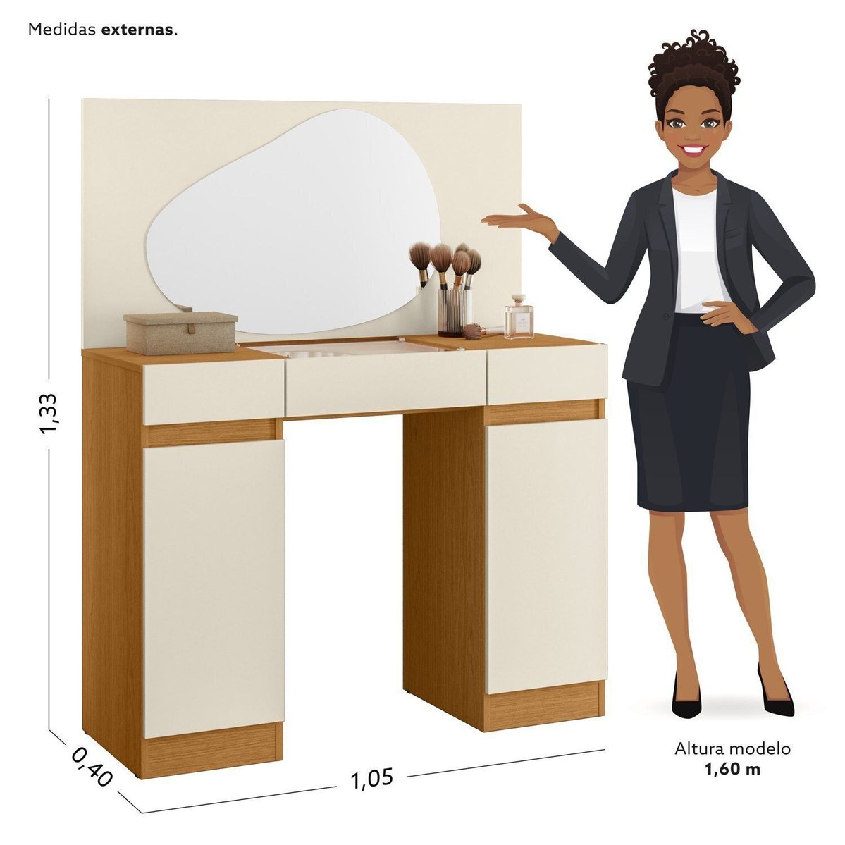 Penteadeira Com Espelho 133cm X 105cm Mimo Cinamomo / Off White