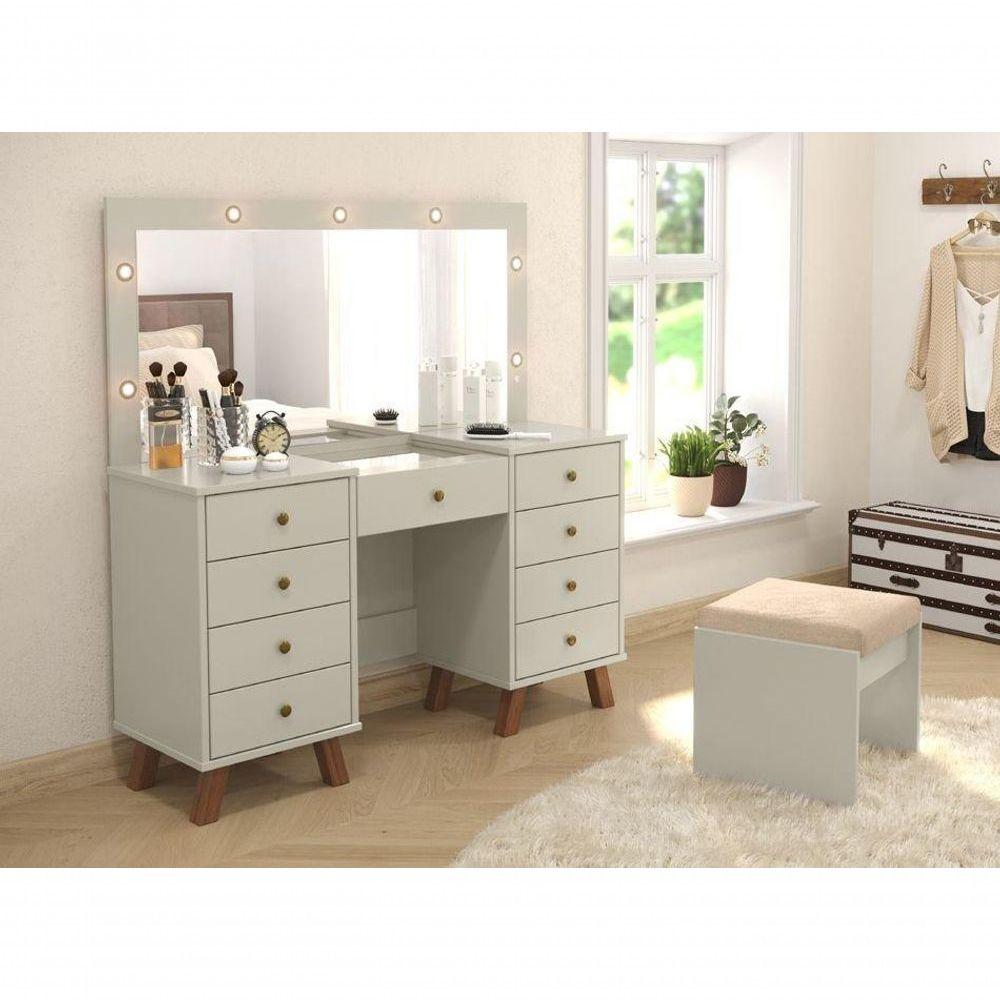 - Penteadeira Com Espelho E Leds Eloá Off White Com Banqueta Patrimar