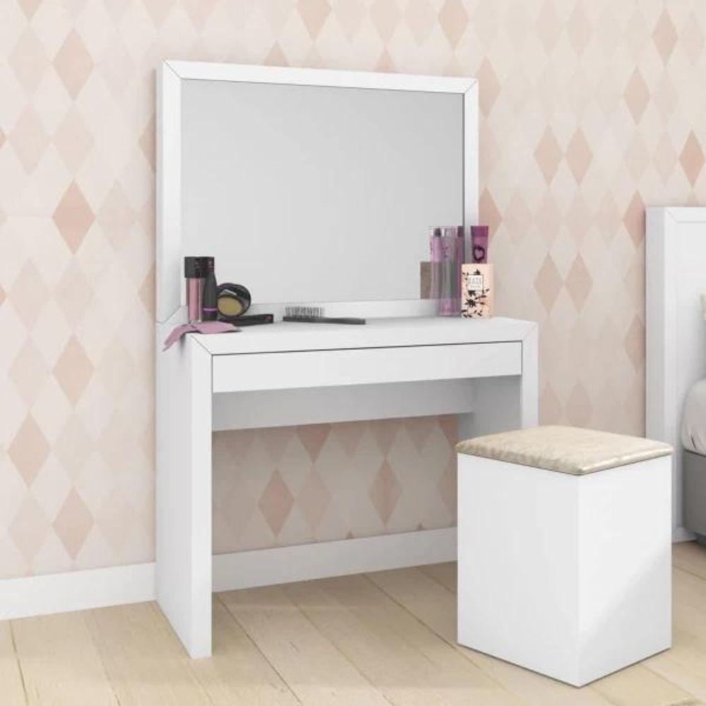 Penteadeira com Espelho Tecnomobili, um produto com design moderno e que cabe no seu bolso, com altura de 1,42m e uma gaveta para organizar e não deixar mais a casa bagunçada, fabricado com material super resistente em BP ela se destaca pelo seu custo beneficio além de ser um produto de fácil montagem.