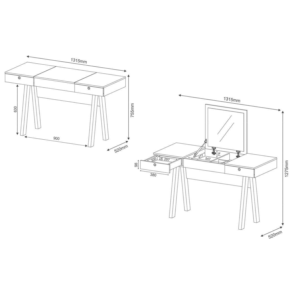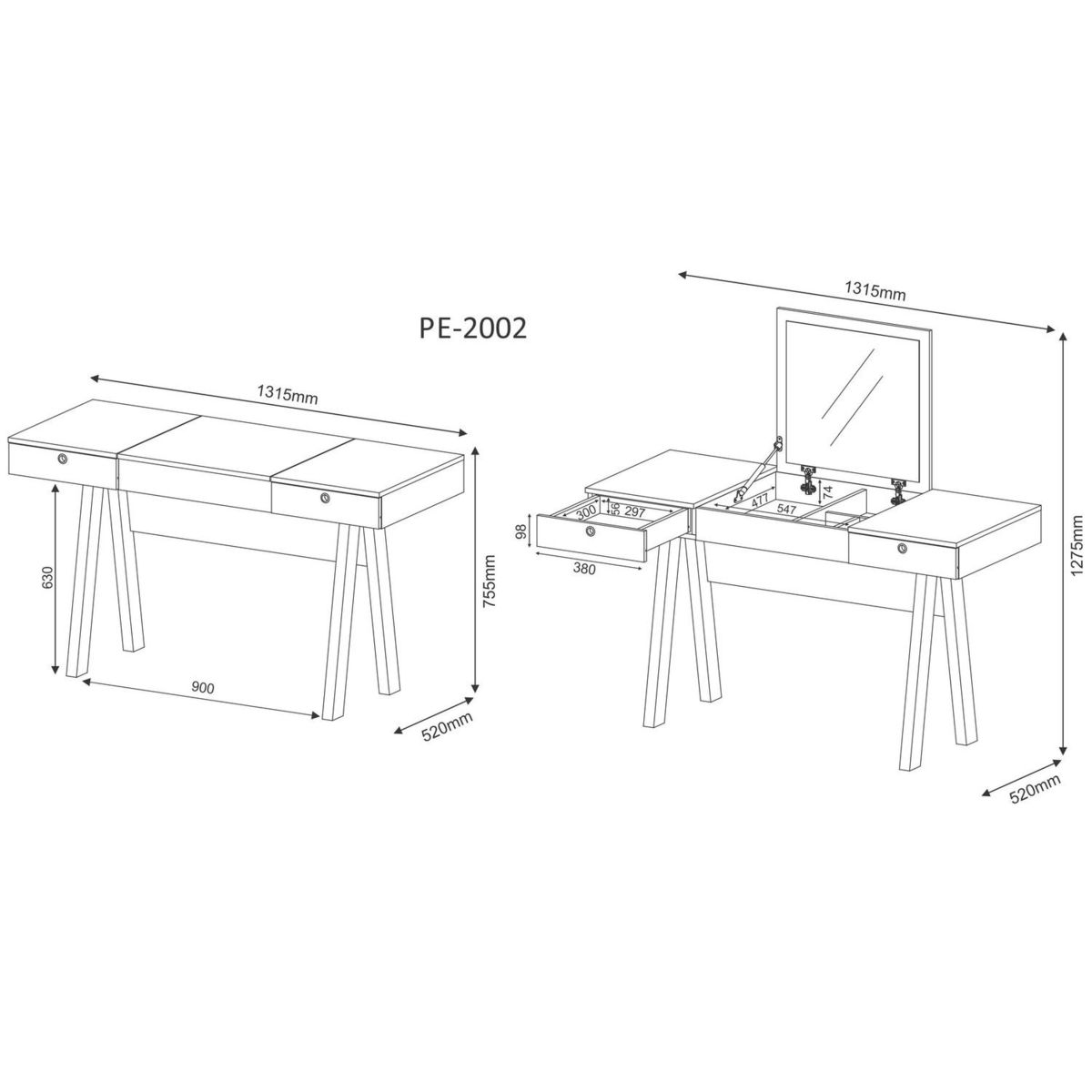 Penteadeira com EspelhoTecno Mobili PE2002Informações TécnicasCor: BrancoAcabamento: BPAcompanha Manual de Instalação: SimAltura: 75,5 cmAmbiente: QuartoCor Predominante: BrancoEscala de Brilho: FoscoEstilo de Cor: BrancoGarantia do Fornecedor: 03 mesesDetalhes técnicos: - Tampo com espelho.- Possui divisórias internasLargura: 131 cmMaterial: MDPMaterial Principal: MDPNecessita Montagem: SimPossui Gavetas: 02Possui Prateleiras: NãoProfundidade: 52 cmSistema de Montagem: Parafuso, Minifix e CavilhaTipo de Gaveta: Externa