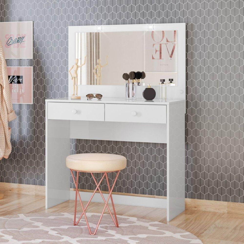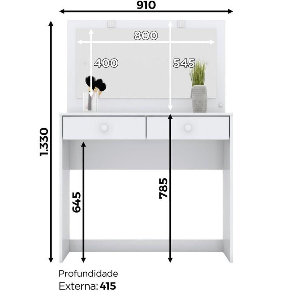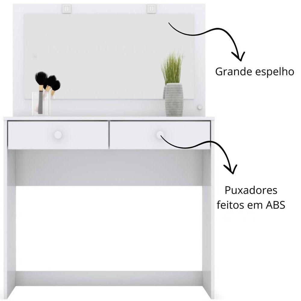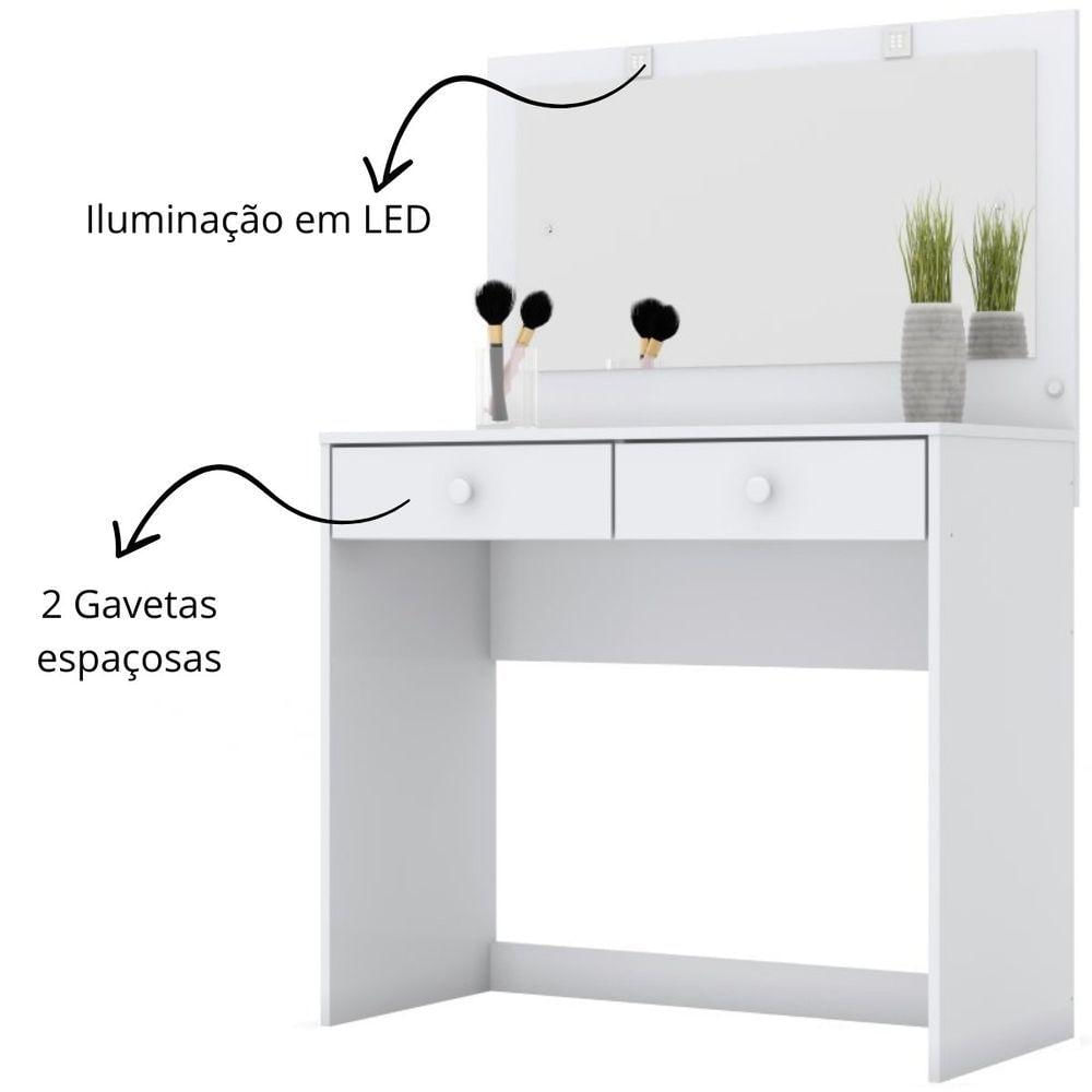 - Penteadeira Com Led E Espelho 2 Gavetas Daila Branco